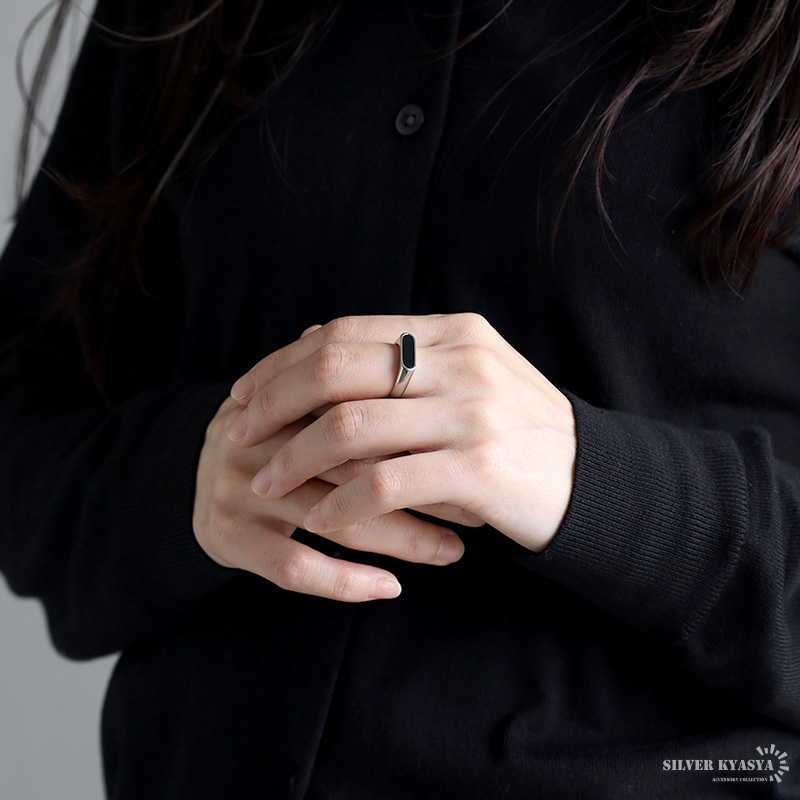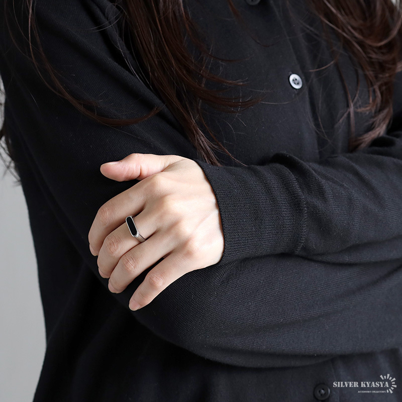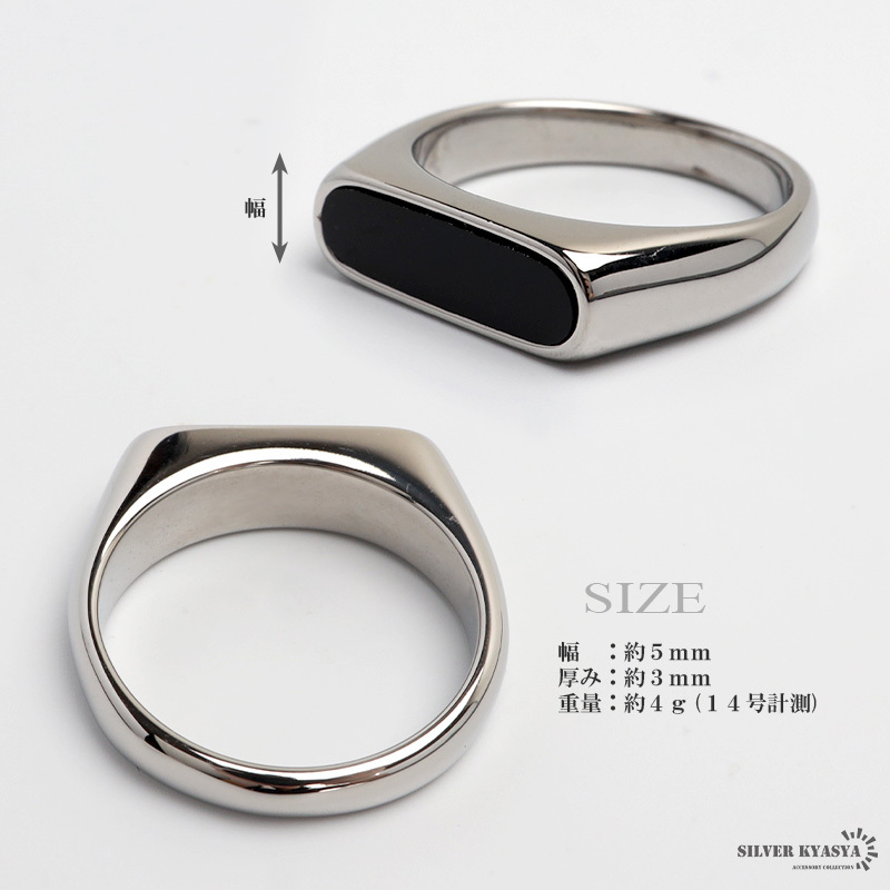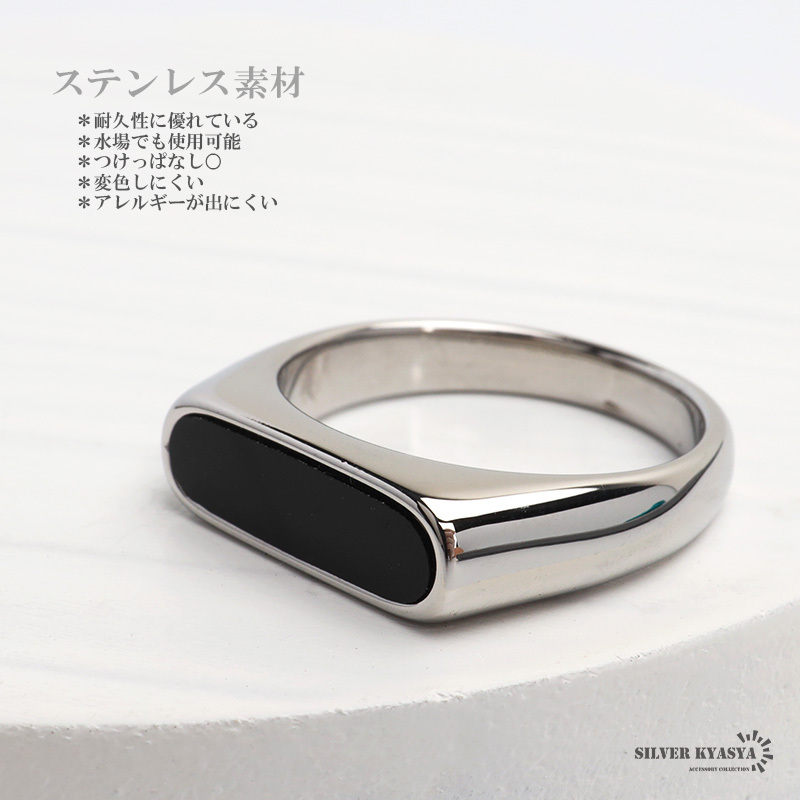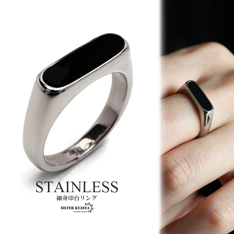 商品概要 | ■ITEM DETAIL ブラック×シルバーのコンビカラーが目を引く印台リング。他の印台リングとは一味違った細身のスタイルが魅力です。洗練されたシンプルなデザインが都会的な印象を与えるアイテム。 ■ステンレス素材を使用 金属部分は頑丈なことで知られるステンレス素材を採用。耐久性はもちろん耐水性も高く水場での着用も可能。金属アレルギーも出にくいとされている金属です。 |