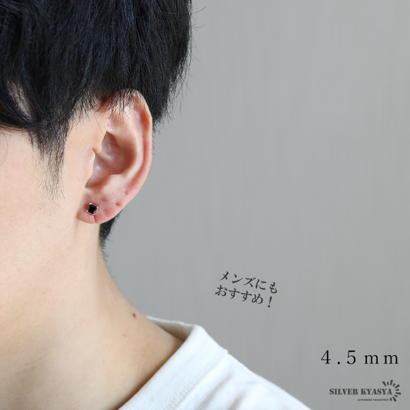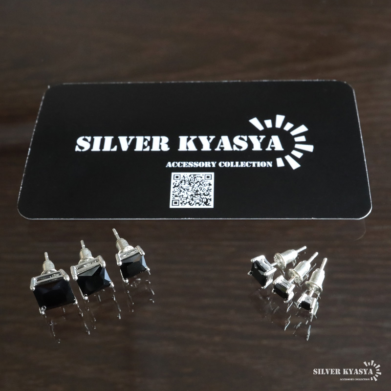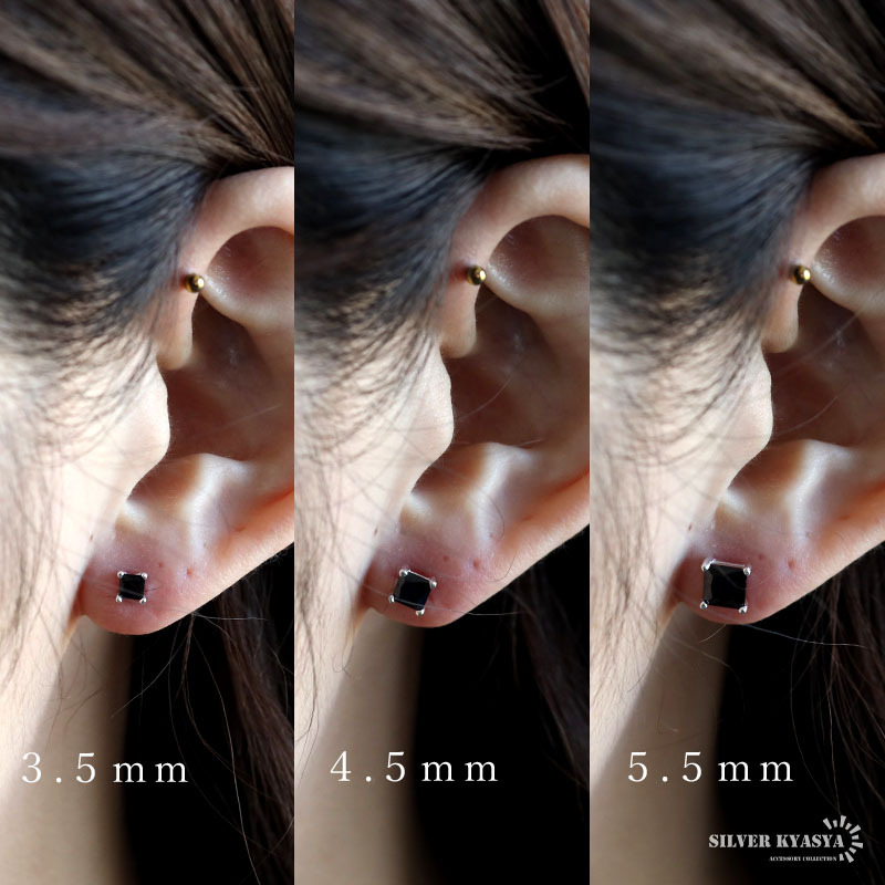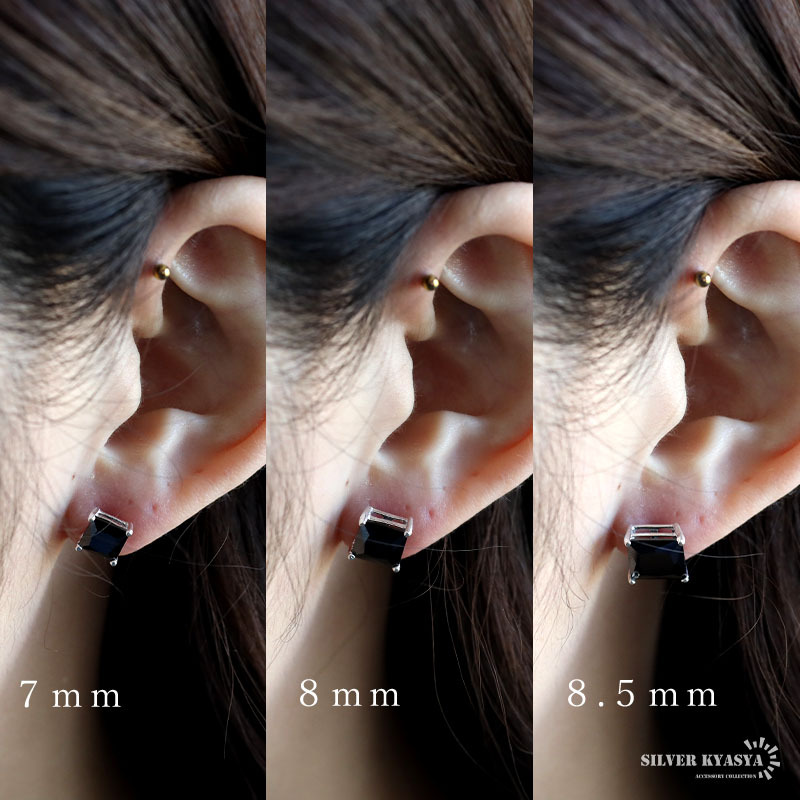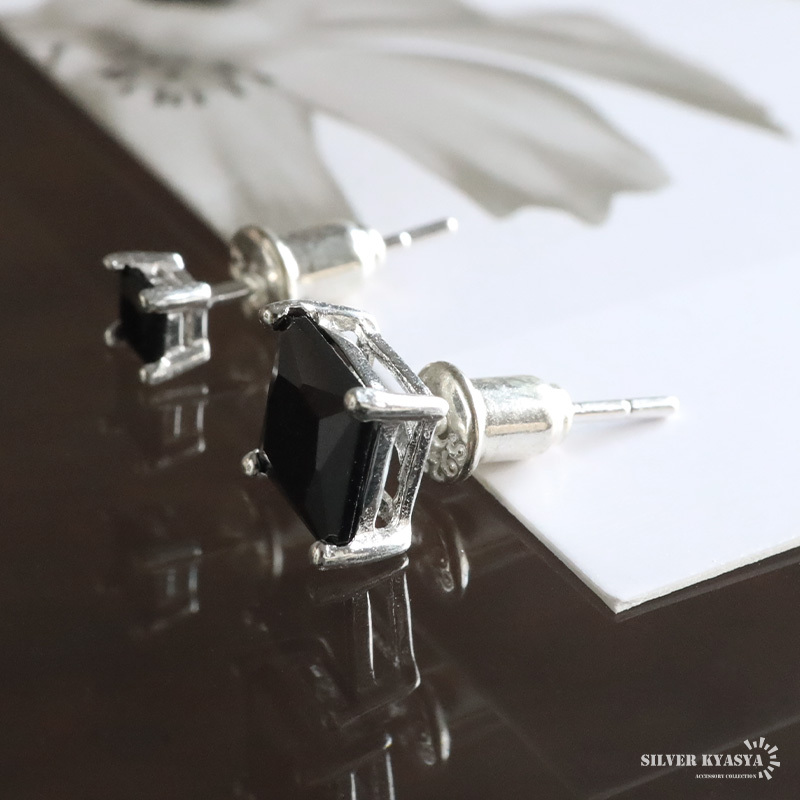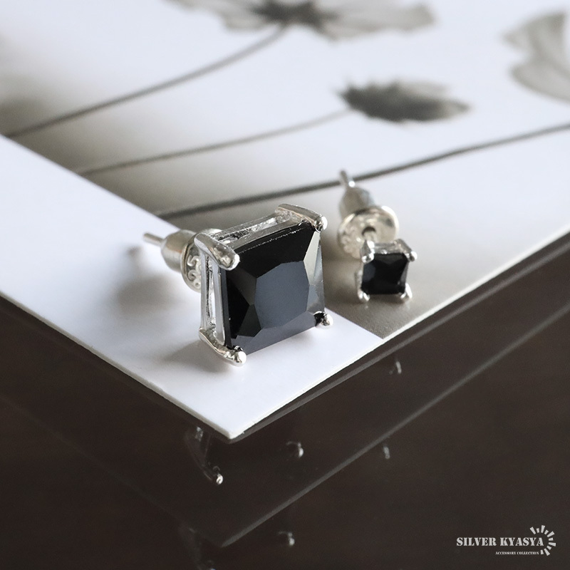 スクエアなブラックストーンをセットしたスタッドピアス。さりげない存在感があり、普段のファッションに馴染みやすいアイテム。サイズは6タイプからお選びいただけます。