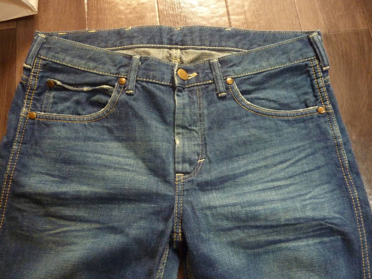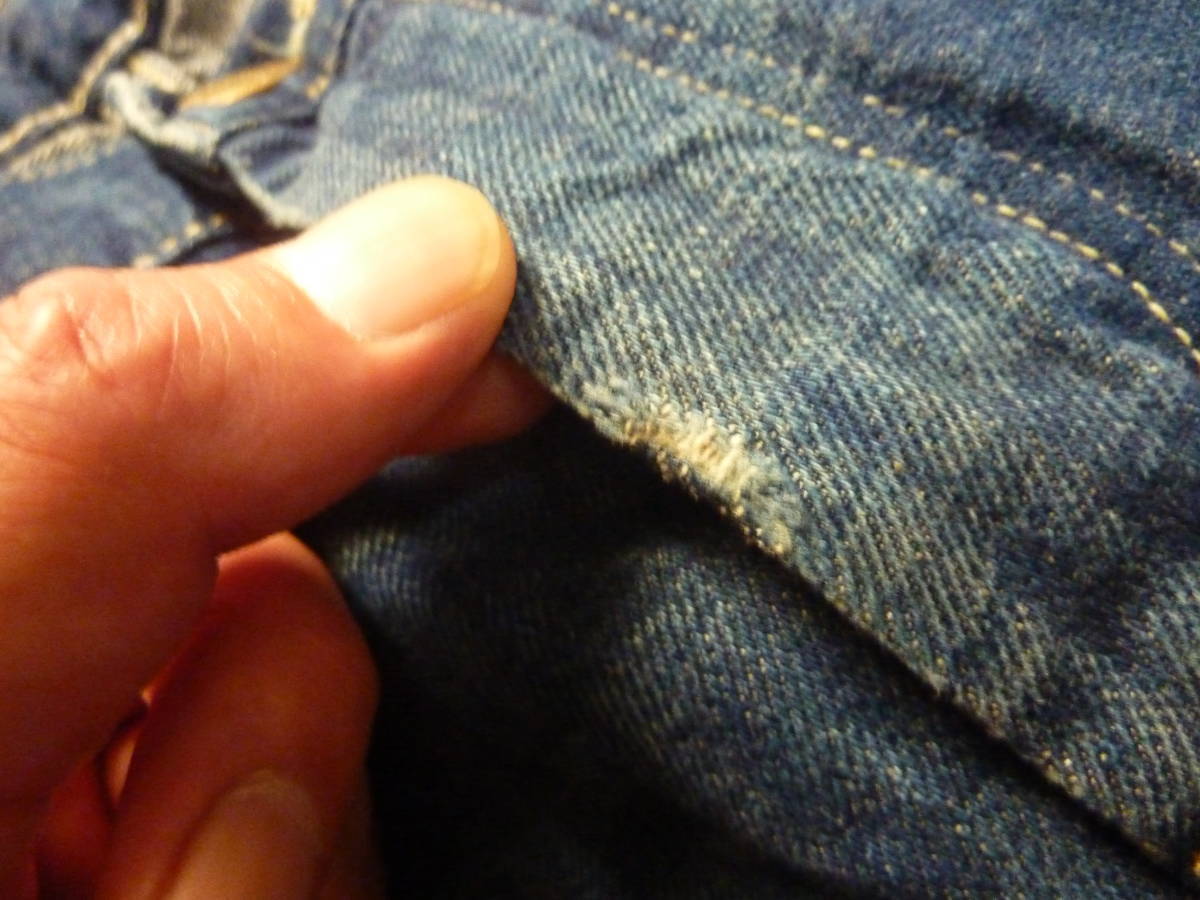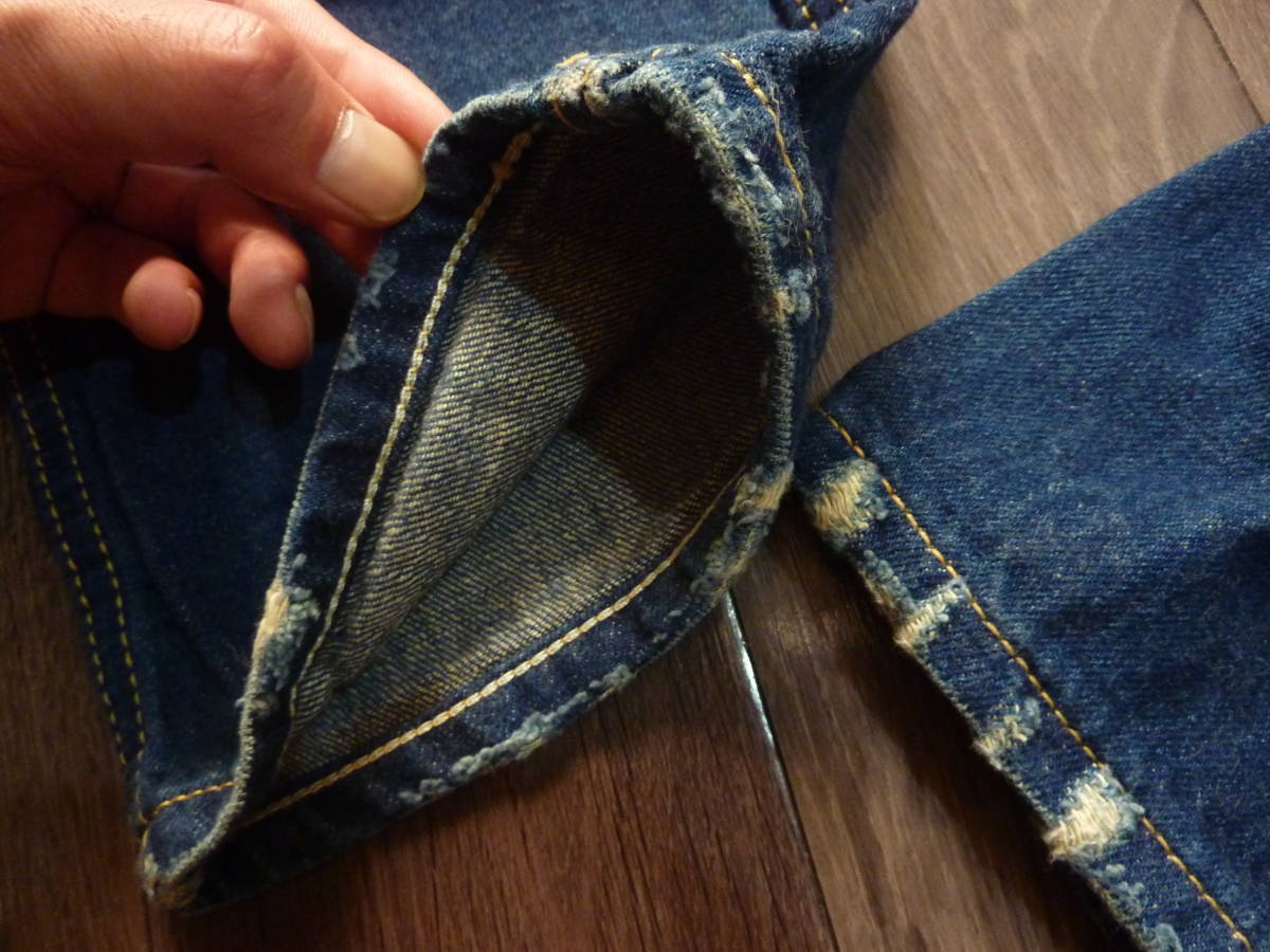 裾やポケットの淵にダメージがありますが加工っぽい感じです ヒゲ(シワ)の感じも加工っぽく感じます
