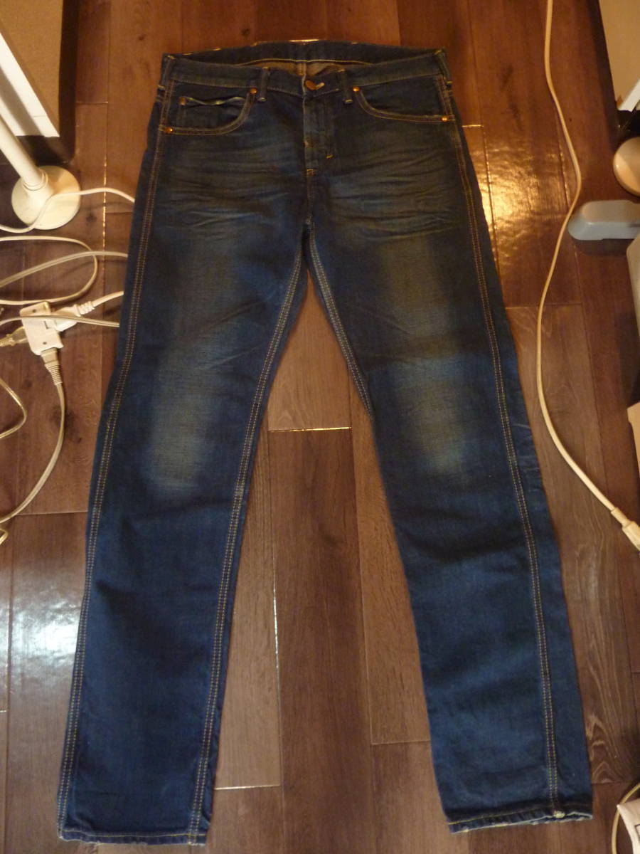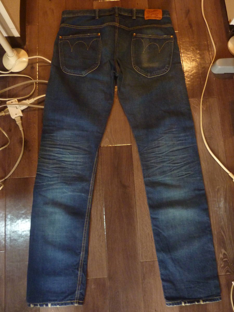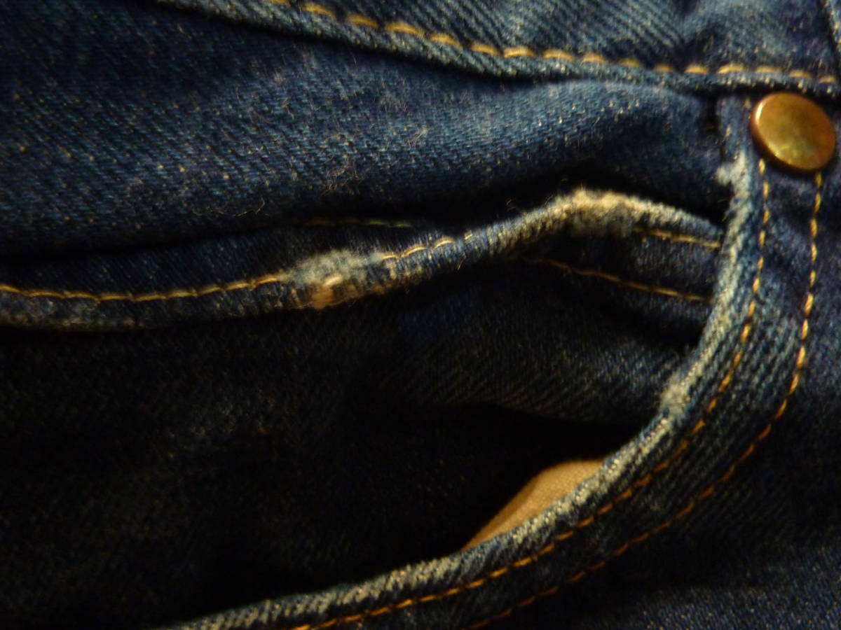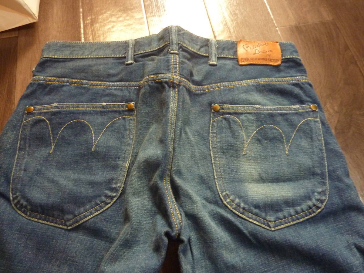 裾やポケットの淵にダメージがありますが加工っぽい感じです ヒゲ(シワ)の感じも加工っぽく感じます