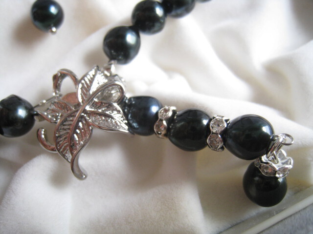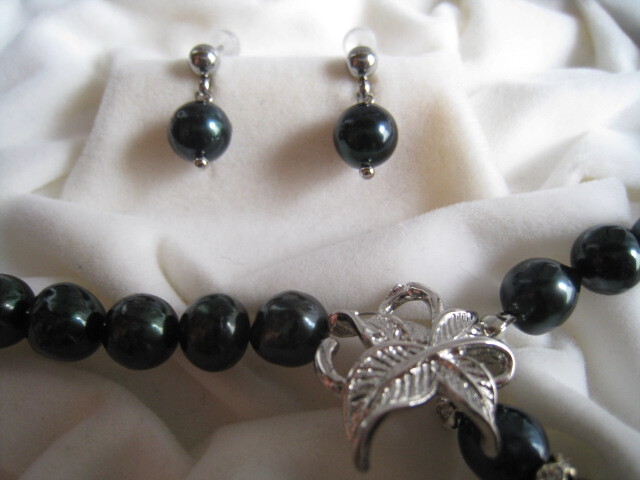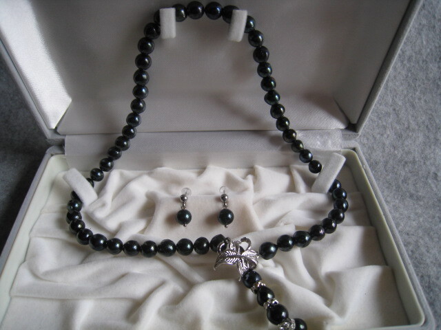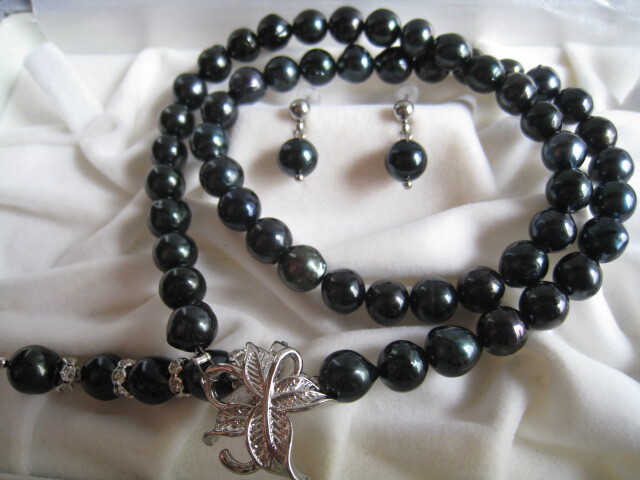 [SAMU]素敵!!照りバロックアコヤ黒真珠 ネックレス珠7.3~7.5㎜&ピアス珠7.5mm 2点セット新品!