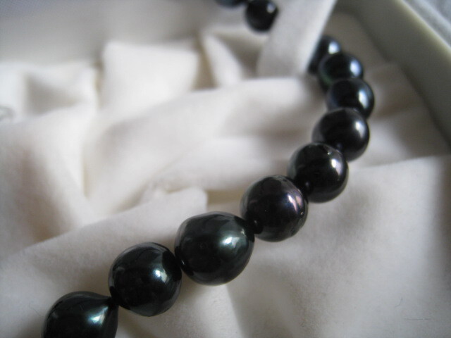 ◇ 石質      天然バロックアコヤ黒真珠: ネックレス珠7.3~7.5㎜&ピアス珠7.5mm