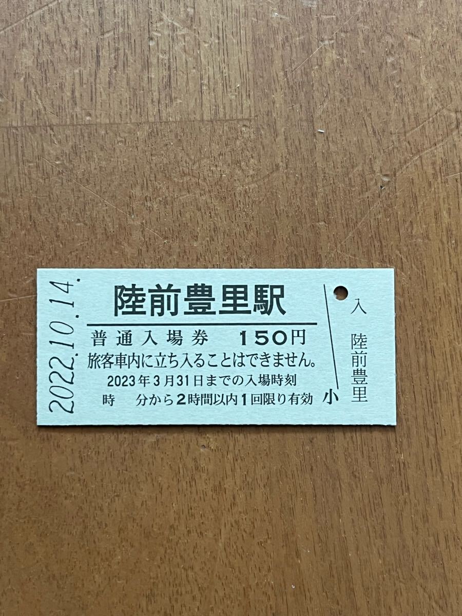 JR東日本気仙沼線陸前豊里駅のB型硬券入場券です。(2022年)