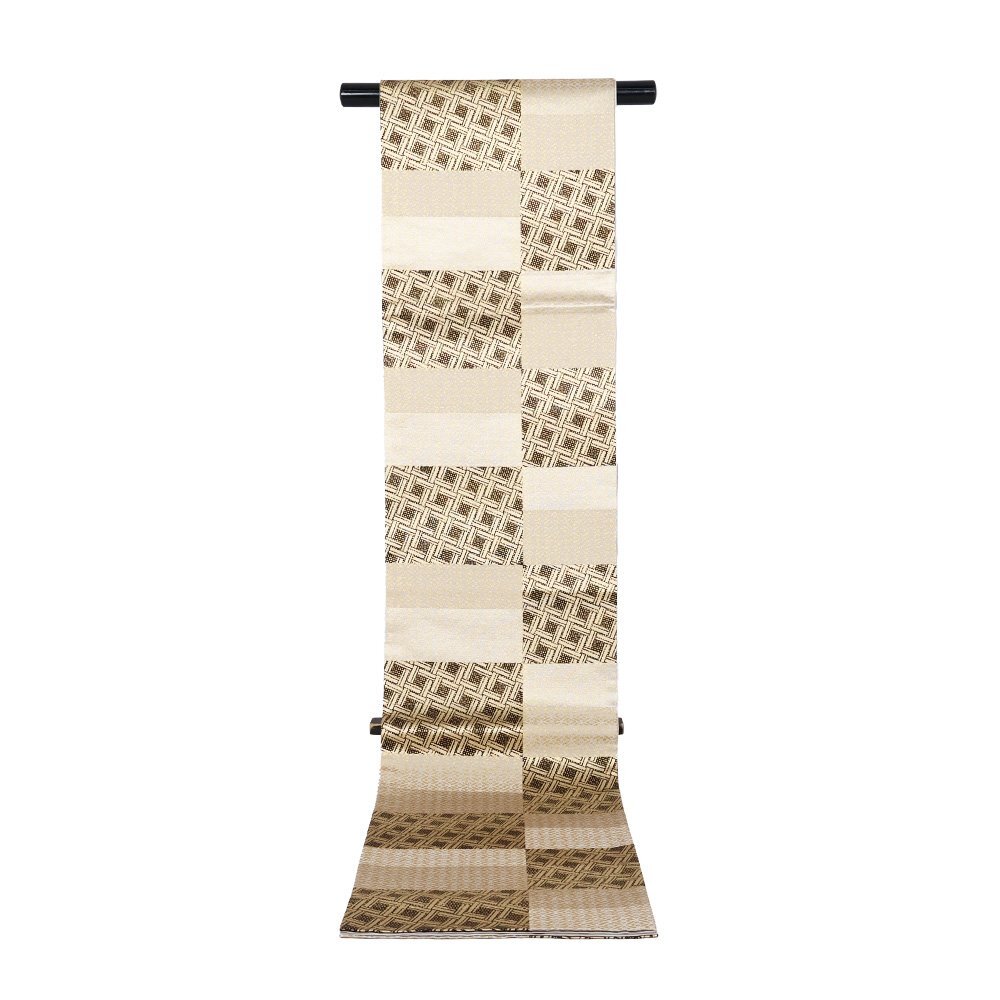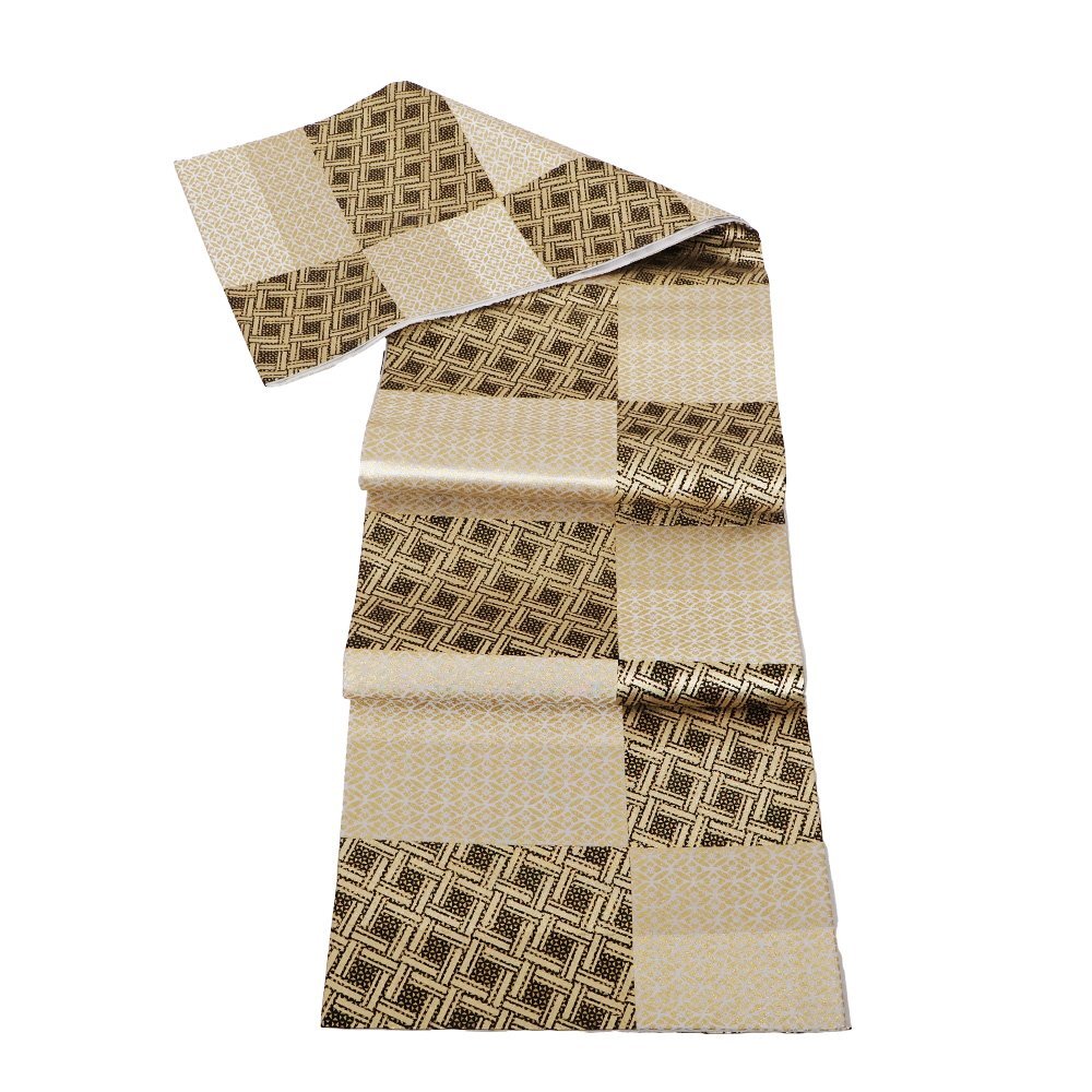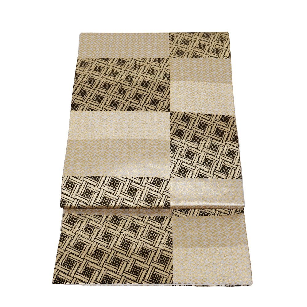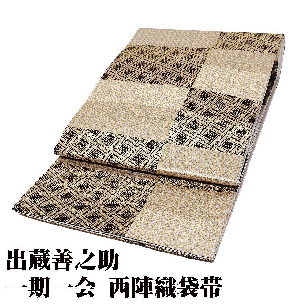 | 出蔵善之助 一期一会 西陣織袋帯 金箔・ベージュ・黒地 七宝文・網代文 未使用品 仕立て上がり |