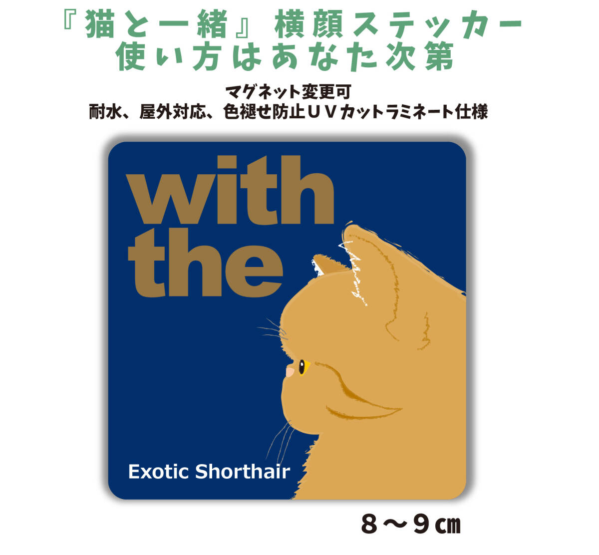 エキゾチックショートヘア レッド『猫と一緒』【玄関 車 ポスト】ステッカー 名入れマグネット変更可 屋外 防水 カスタマイズ