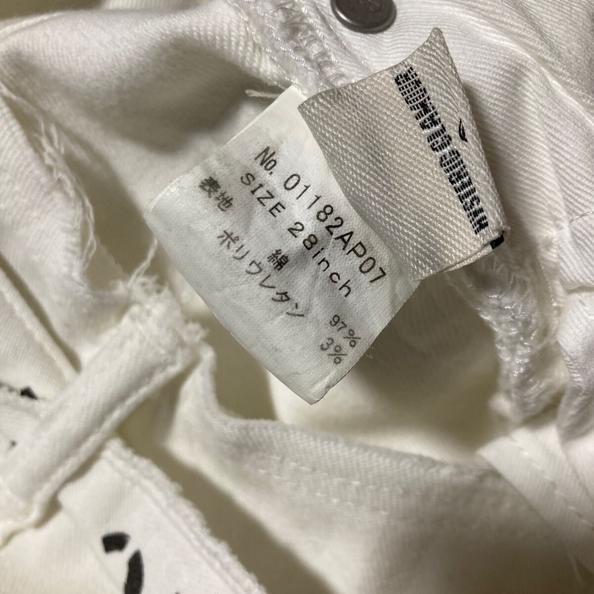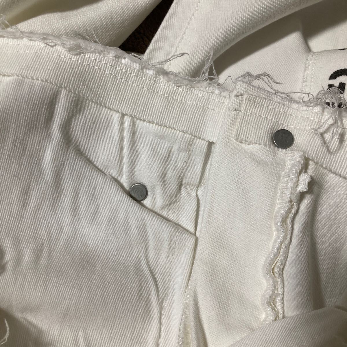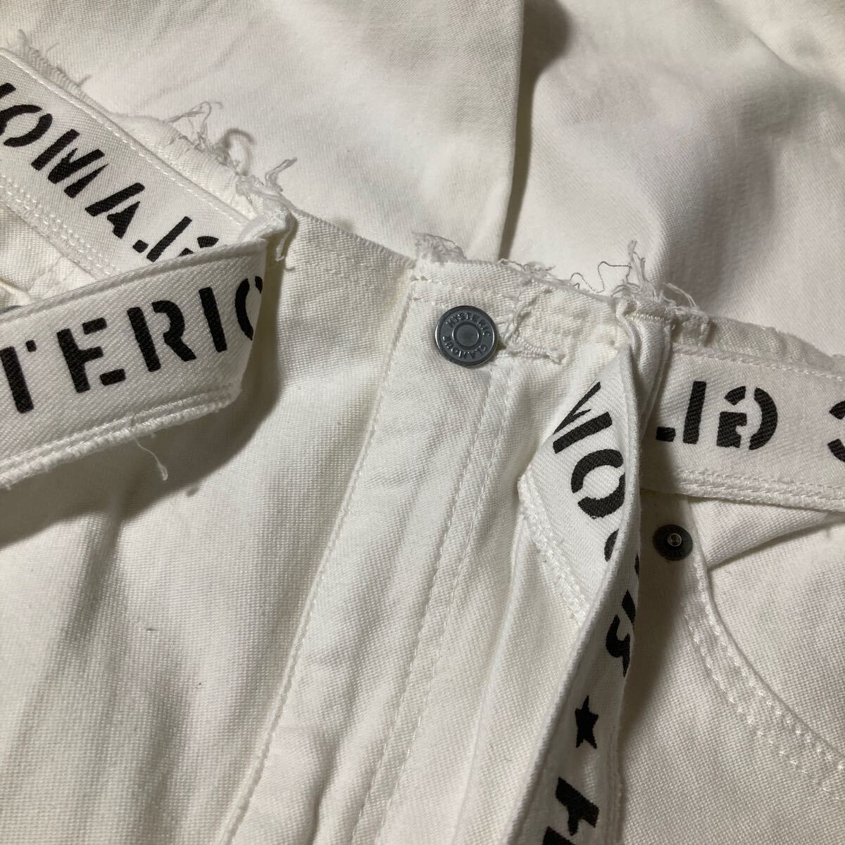 切りっぱなし+ベルト部分を外したリメイク風のデザインで、ステンシルロゴのリボンベルトがポイント。