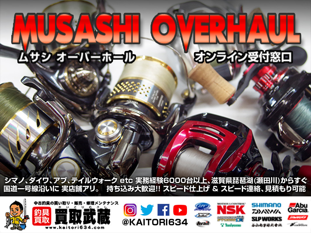 また リールの修理メンテナンス [こちら] も行なっております。他業者からメーカーから断られたリールの修理も可能です。ロッド&ガイドの修理や改造 [こちら] も行なっております。折れたロッドも繋げて直せます。休業日や営業時間の確認は こちら にてお願いします。