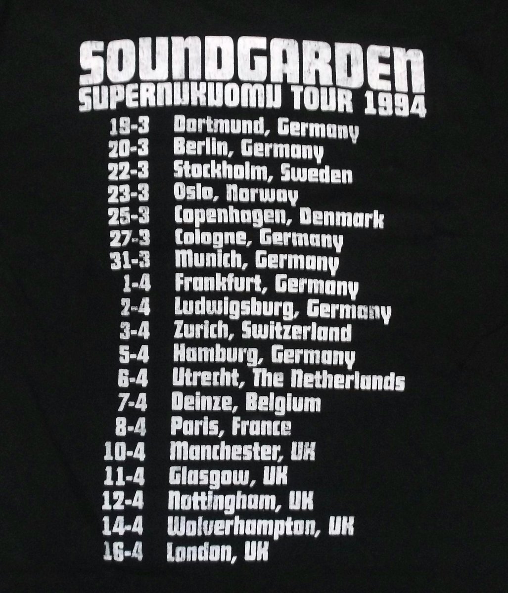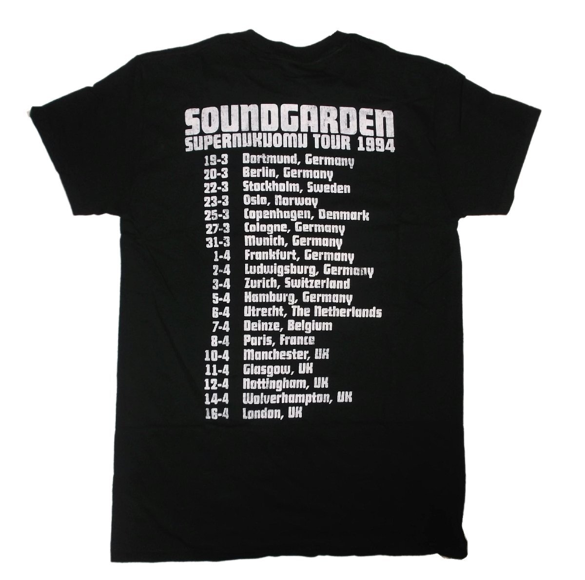 | Soundgarden Unisex T-Shirt: Superunknown Tour '94 (Black) (Back Print) 正規品 Official licensed Soundgarden Unisex T-Shirt featuring the 'Superunknown Tour '94' design motif. 1984年にシアトルで結成され、あのカート・コバーンにも多大な影響を与えた、 元祖グランジ・バンド「サウンド・ガーデン」のTシャツ「Superunknown Tour '94」バックプリント入りです。 1994年に発表した4thアルバム「Superunknown」に合わせて開催されたヨーロッパツアーT復刻!! 1991年作の2ndアルバム「バッドモーターフィンガー 」のジャケット・STEEL ICONをモチーフとした、これぞサウンドガーデンといったデザイン、バックにはツアー・デート入り 正規品・新品 Lサイズ 180cm位の方~良いかと思われます。肩幅52cm, 身幅54cm, 着丈76cm 郵メール便送料¥250(代引き不可・紛失補償なし) ACE CAFE LONDON、LUCKY13、THRASHER、Sailor Jerry等~アメキャラ・企業ロゴ等ライセンスTシャツ、RATFINK関連品、バンドTシャツ、等取り扱っております。 ** 他にも色々出品中です。 CWBT cwktw cwlpm IWTS | |||||||