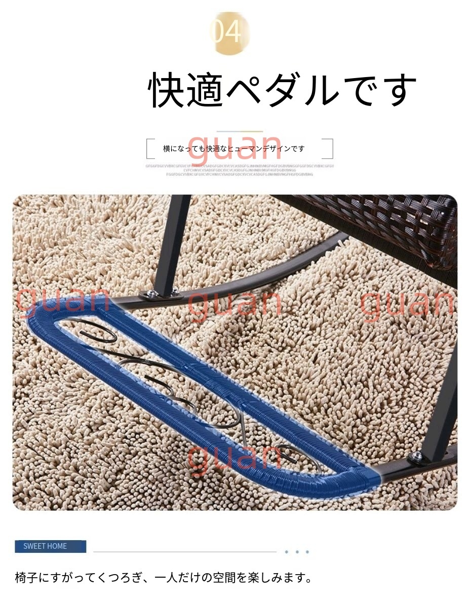 ロッキングチェア ガーデンチェア 戸外籐揺り椅子 多機能ロッキング リクライニングチェア 高耐荷重 水や汚れに強い 組み立てが簡単
