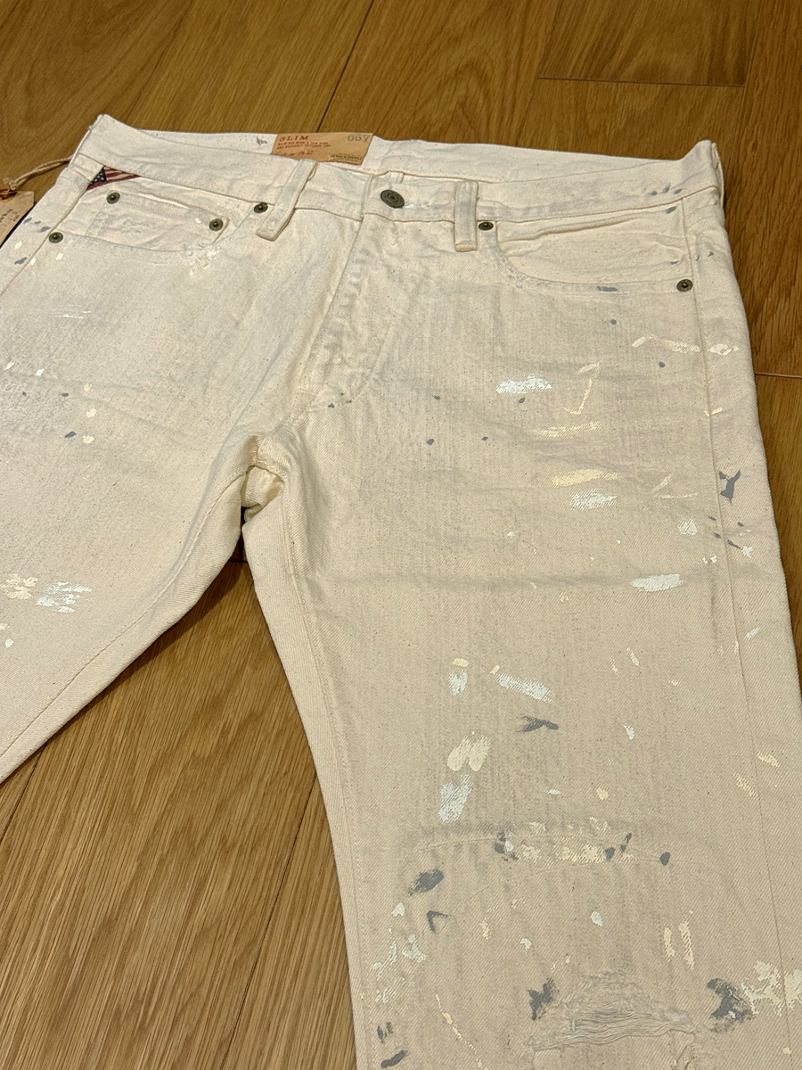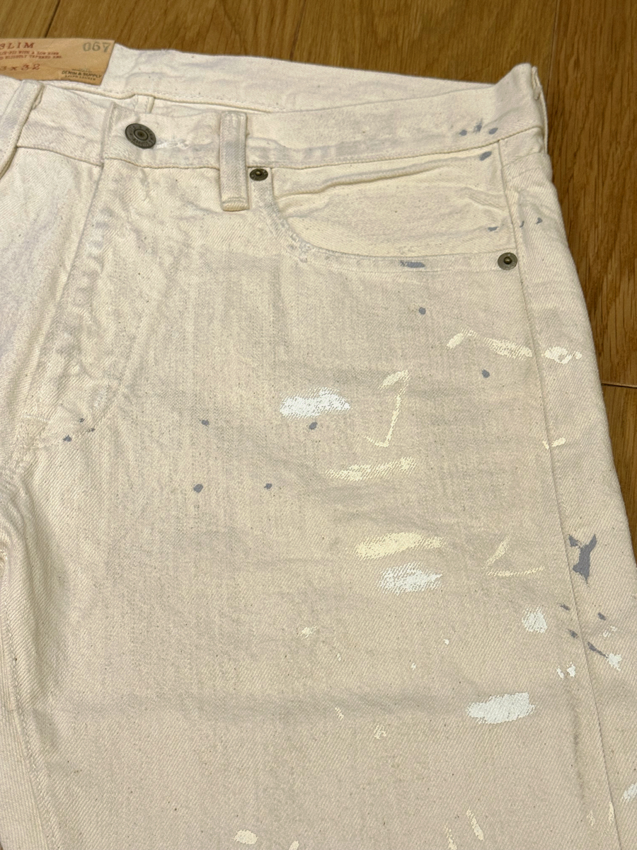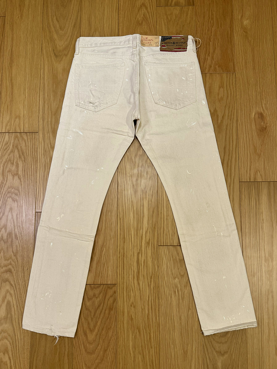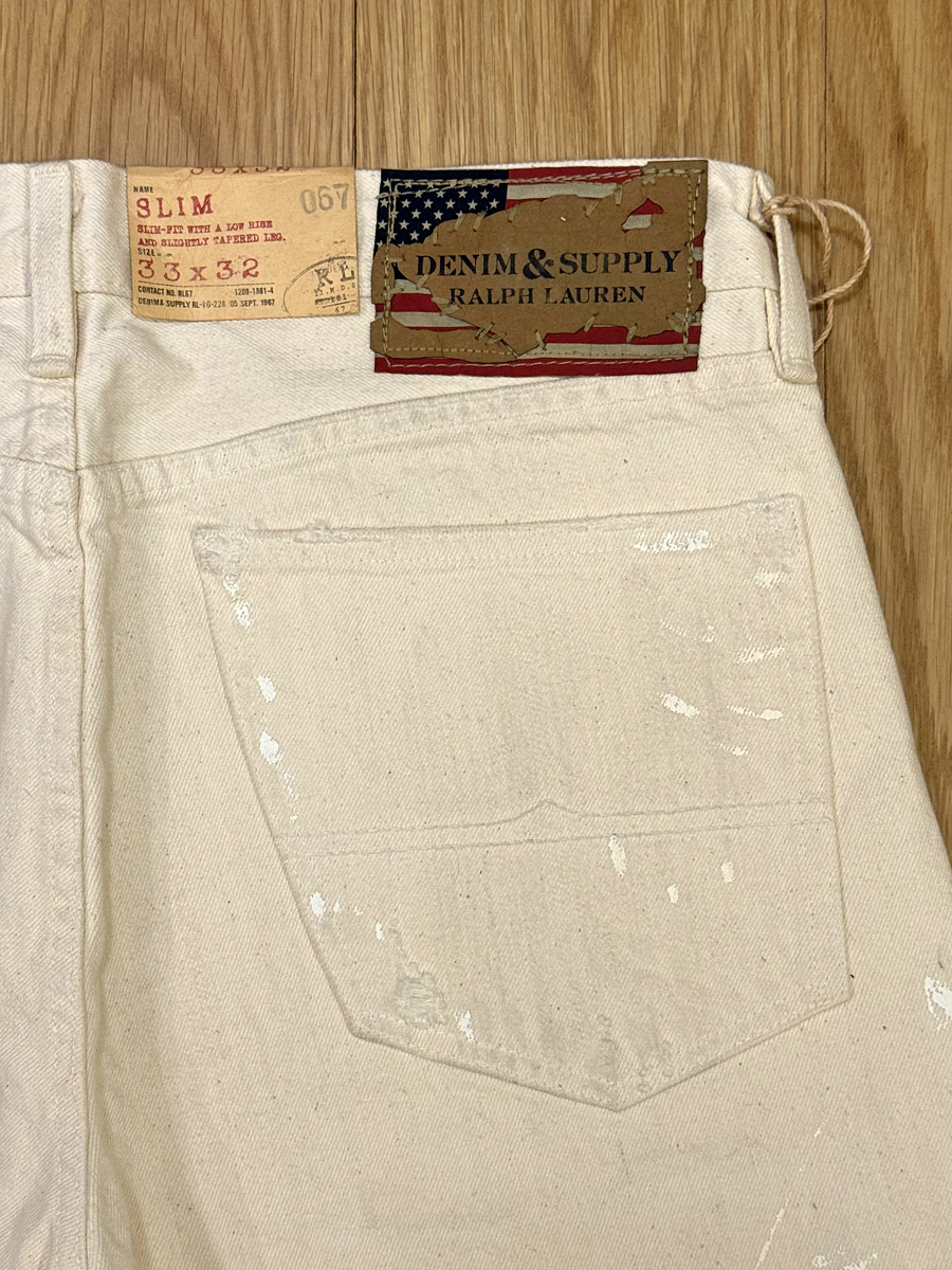 未使用 デッドストック DENIM&SUPPLY ダメージ ホワイト デニムパンツ 33x32 SLIM デニム&サプライ ラルフローレン ホワイトジーンズ