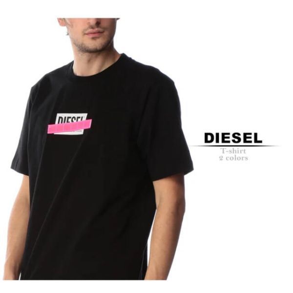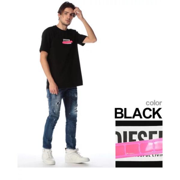 DIESEL Tシャツ ボックスロゴ プリント 蛍光テープ ブラック L ディーゼル
