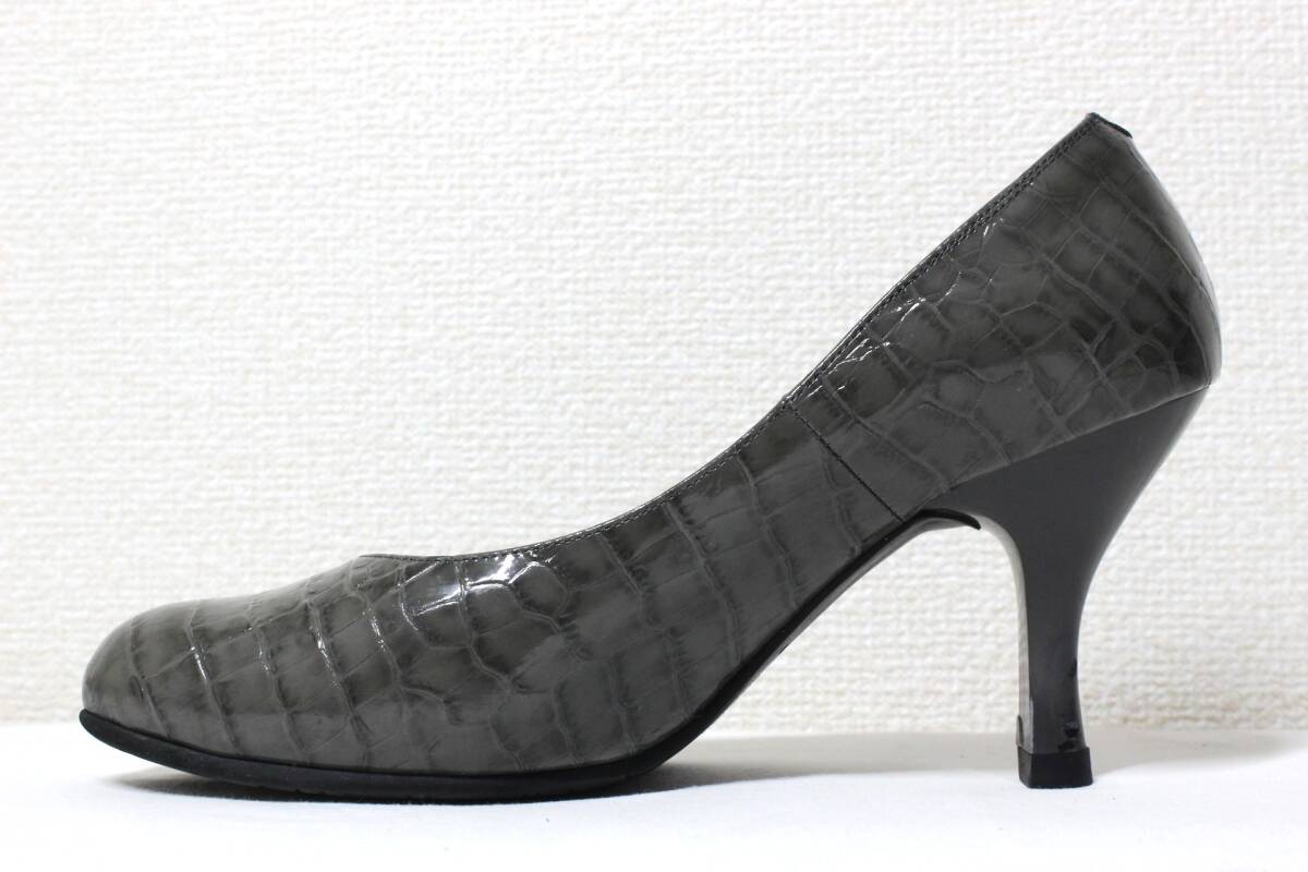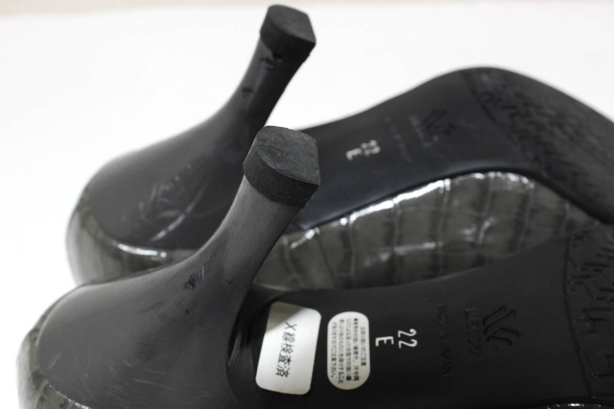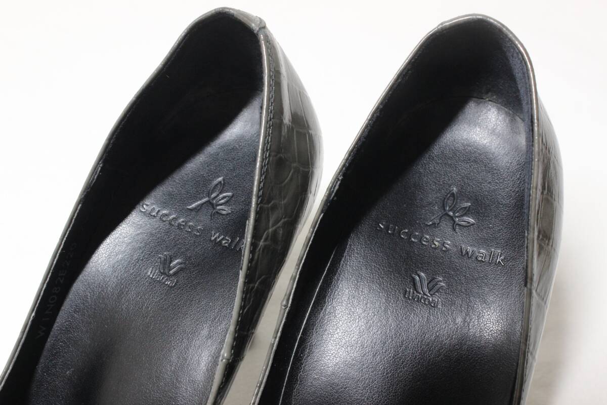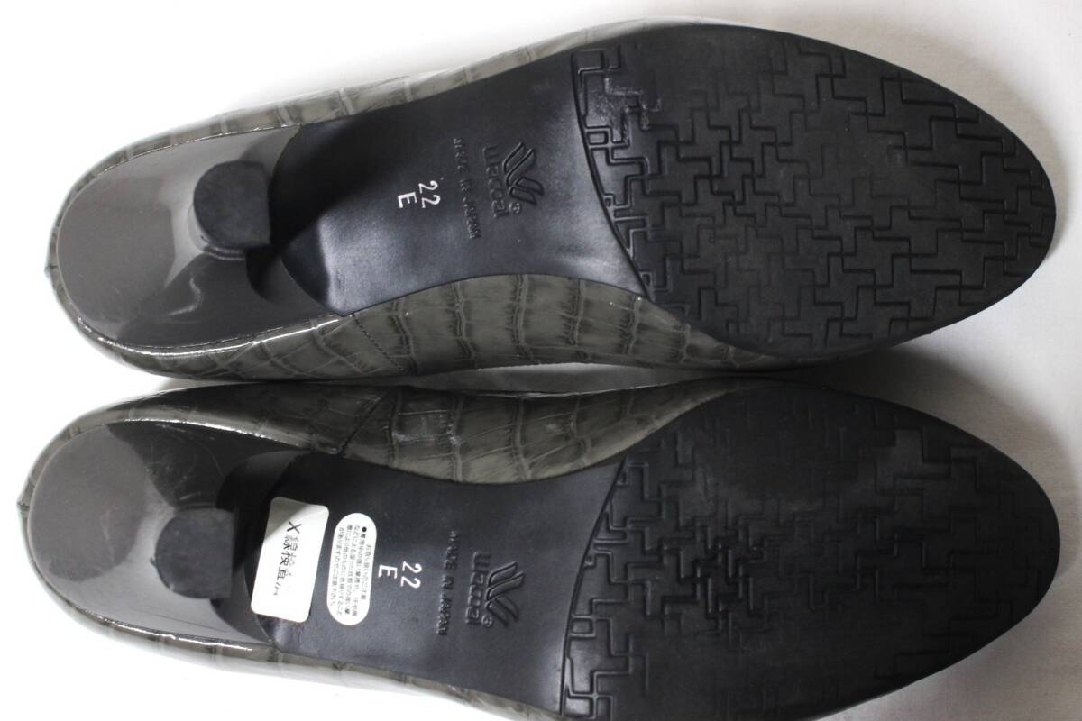 01【美品】ワコール サクセスウォーク パンプス 22 E ラウンドトゥ ヒール 8cm エナメル 型押し tqe Wacoal SUCCESS WALK ★美品★