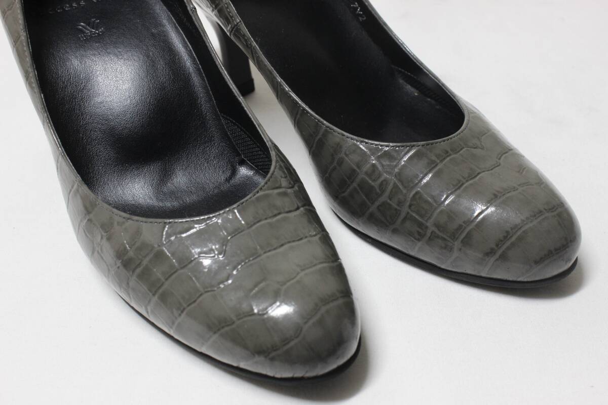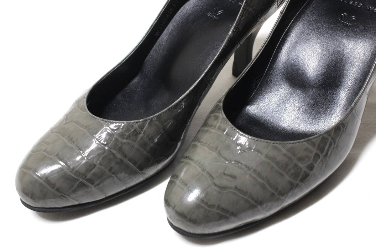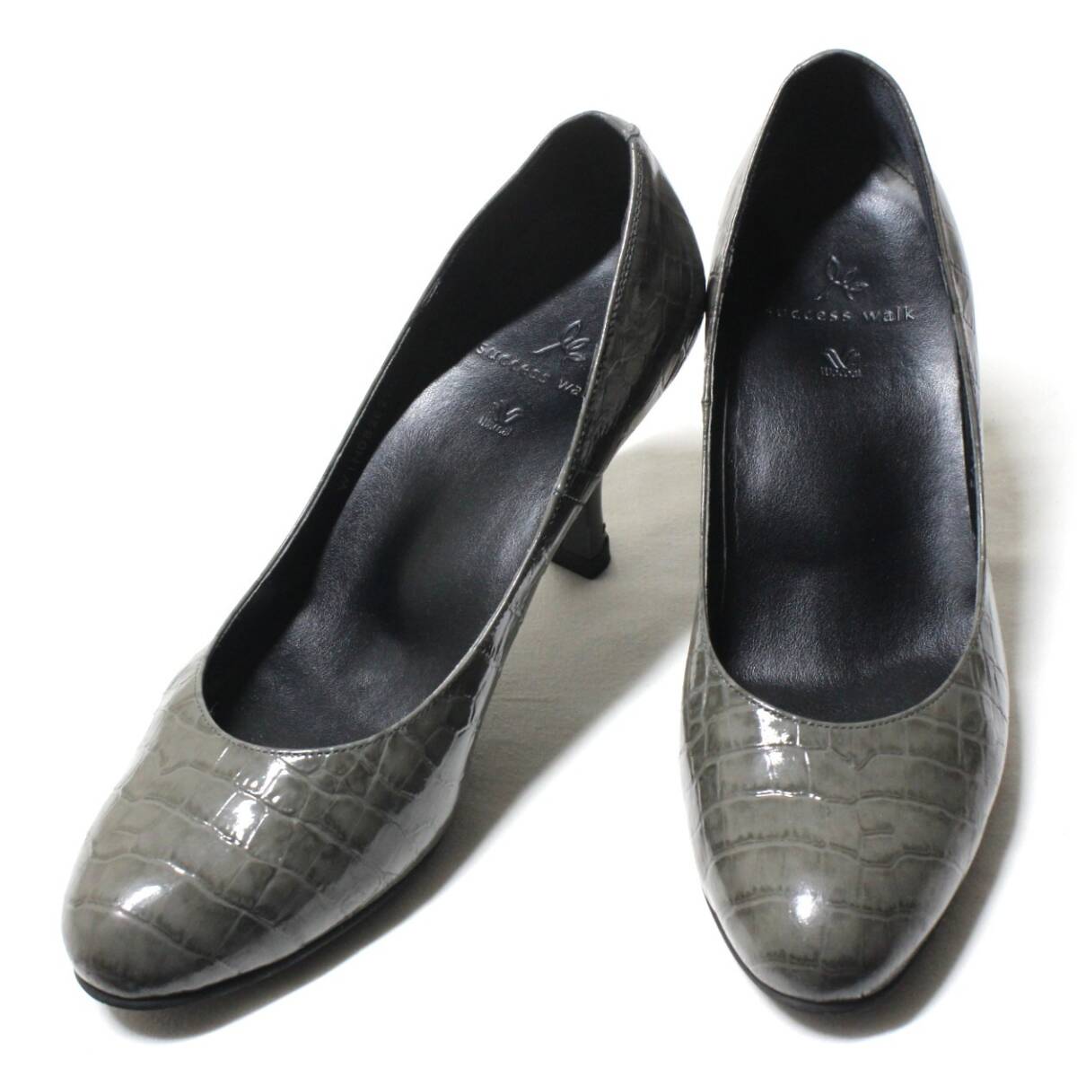 01【美品】ワコール サクセスウォーク パンプス 22 E ラウンドトゥ ヒール 8cm エナメル 型押し tqe Wacoal SUCCESS WALK ★美品★