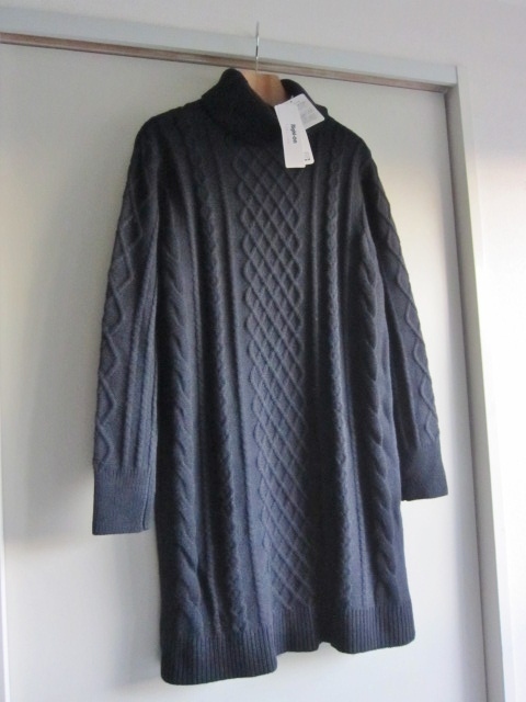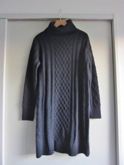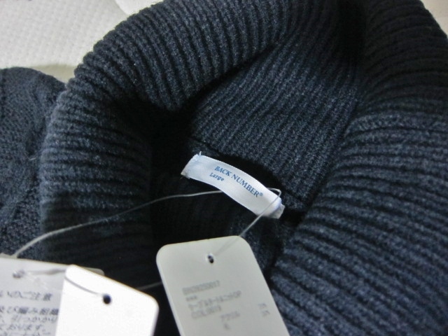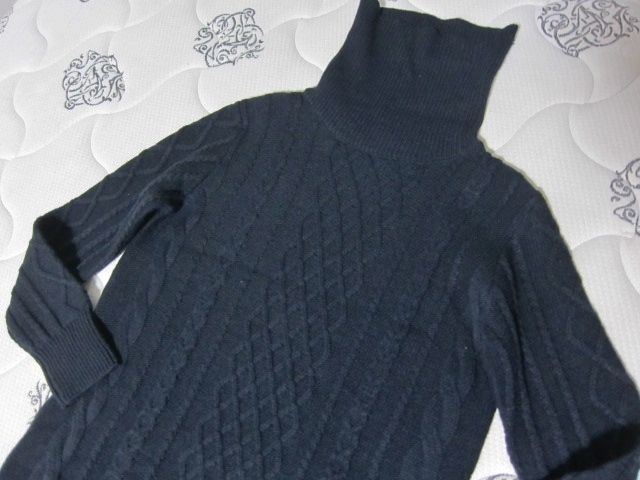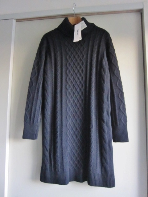 新品未使用 タグ付き Right on FUNCTION サイズL ケーブルタートルニット ネイビーハイネック ニットロング 得 特