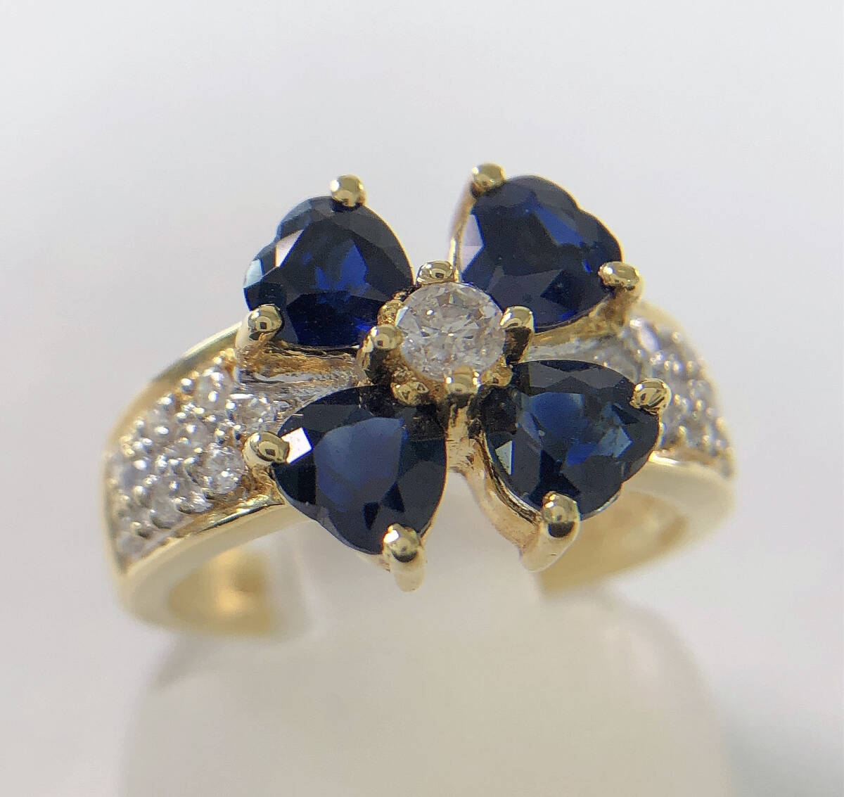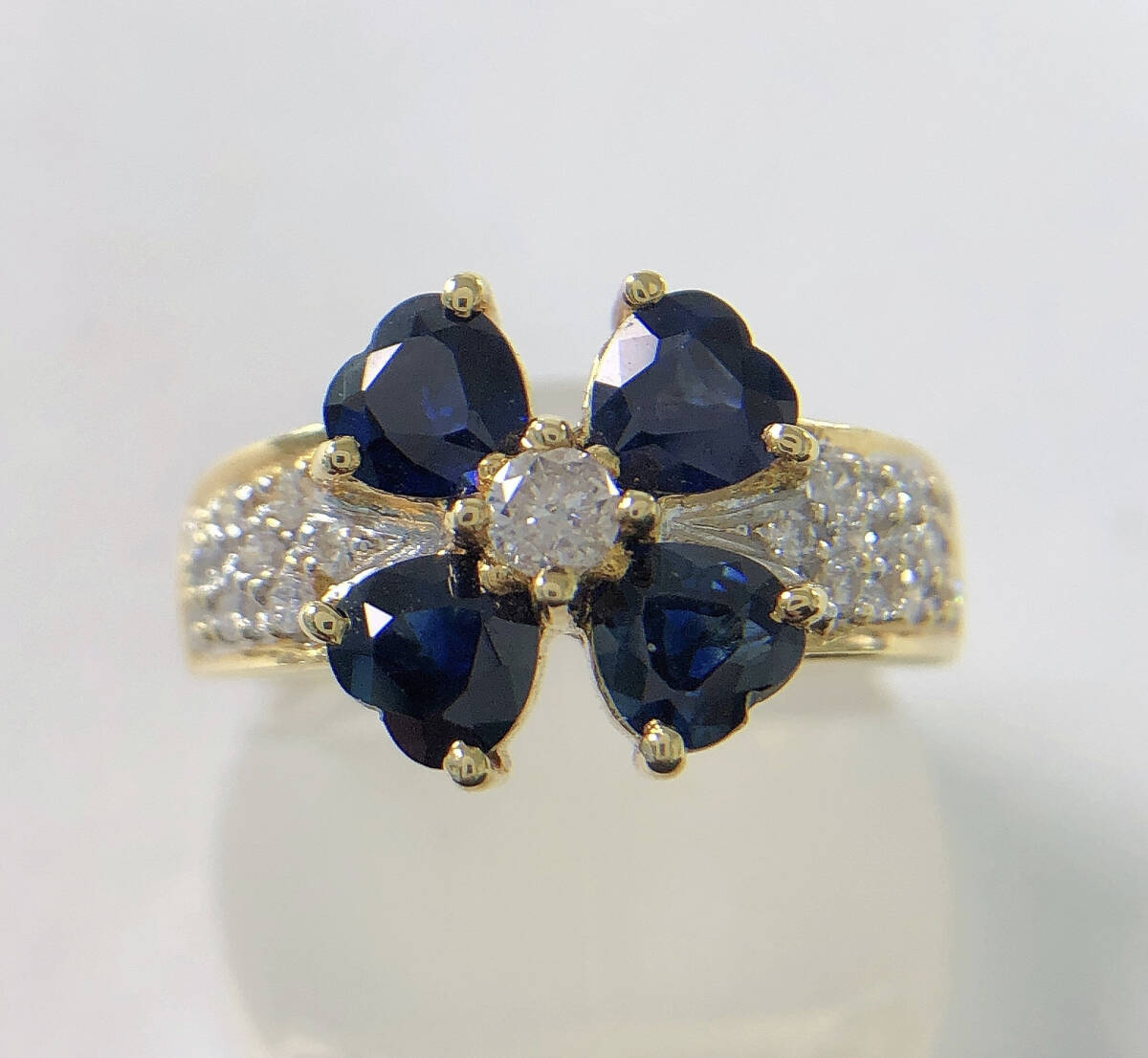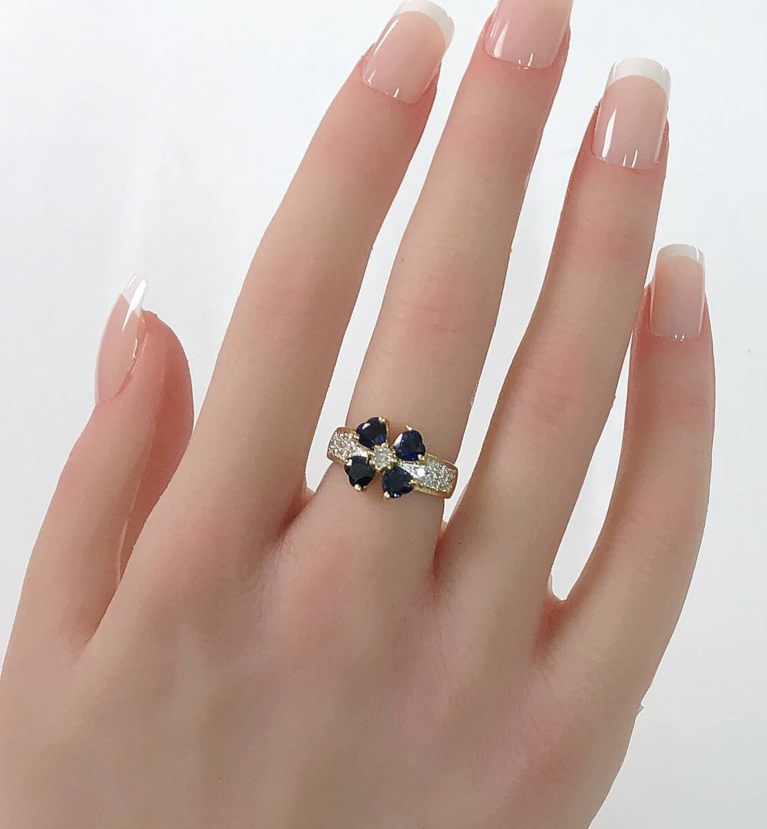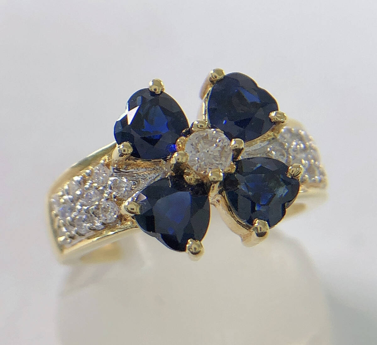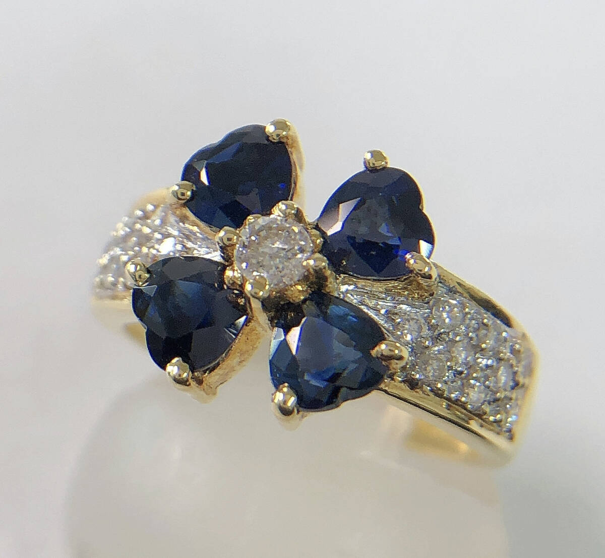 素敵 クローバーモチーフ K18 天然サファイア1.50ct 天然ダイヤモンド0.23ct リング 指輪 約9号 約5.0g