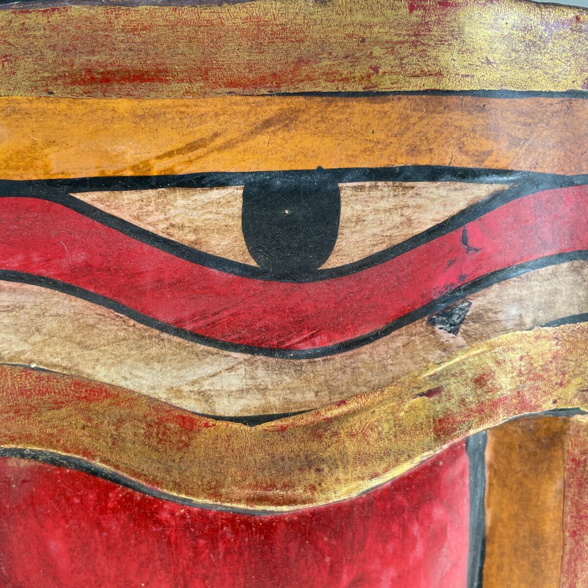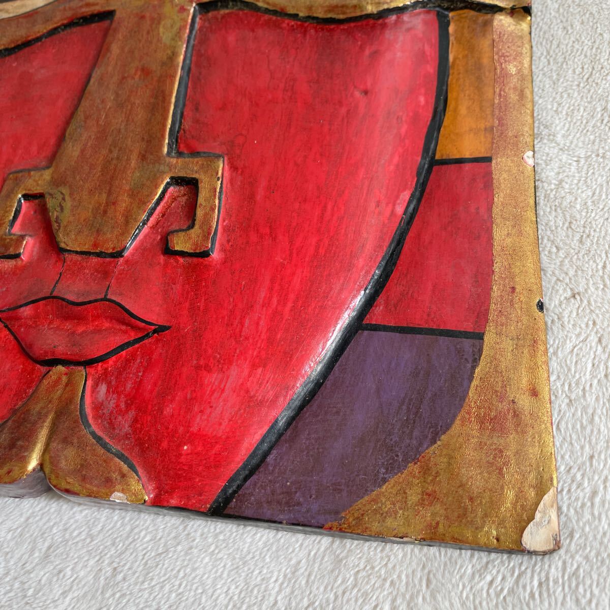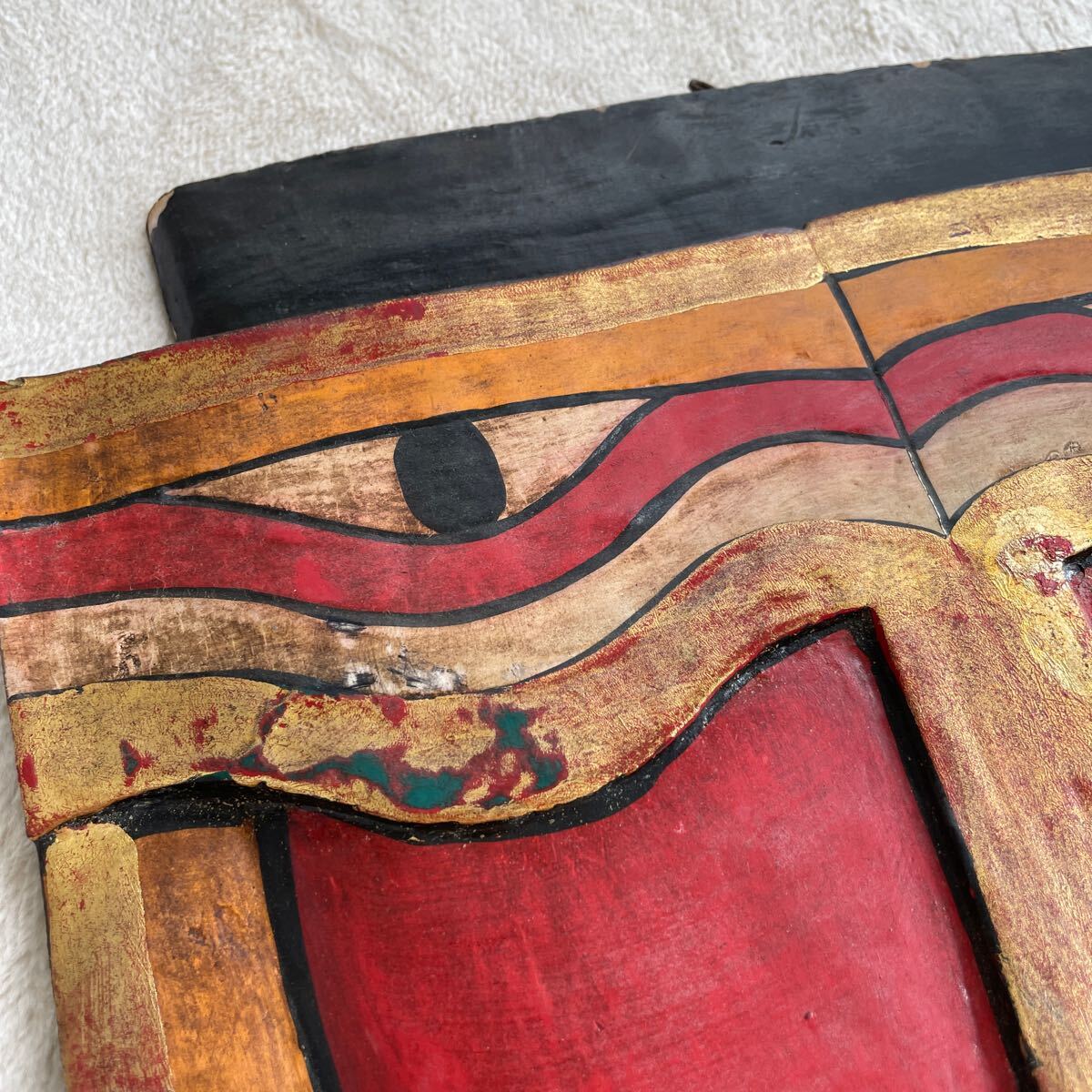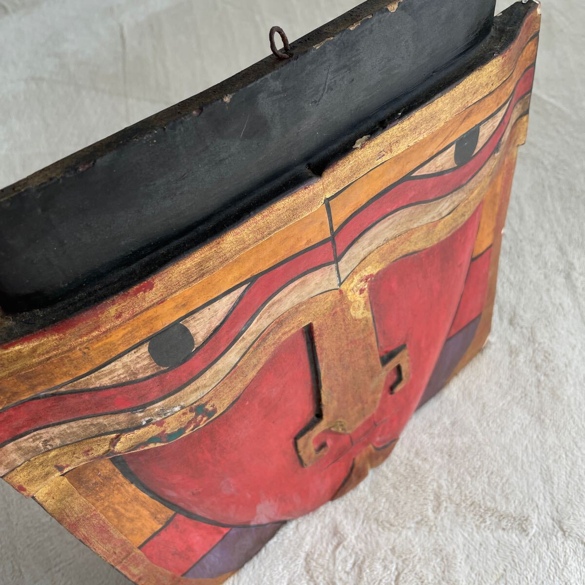 こちらはインドネシアの職人による木彫りマスクの壁掛けアートです。手彫りとハンドペイントによる鮮やかなデザインが特徴で、エスニックな雰囲気を演出します。お部屋のアクセントやコレクションにも最適です。ヴィンテージ品のため多少の使用感がありますが、全体的に良好な状態です。ぜひこの機会にいかがでしょうか?ご質問があればお気軽にどうぞ!