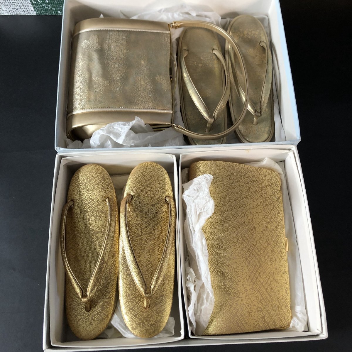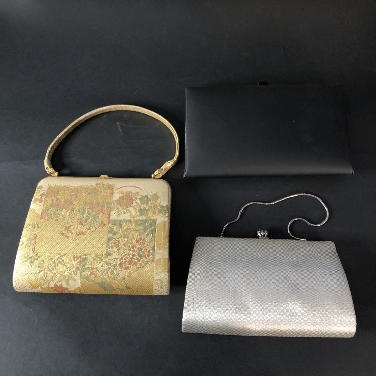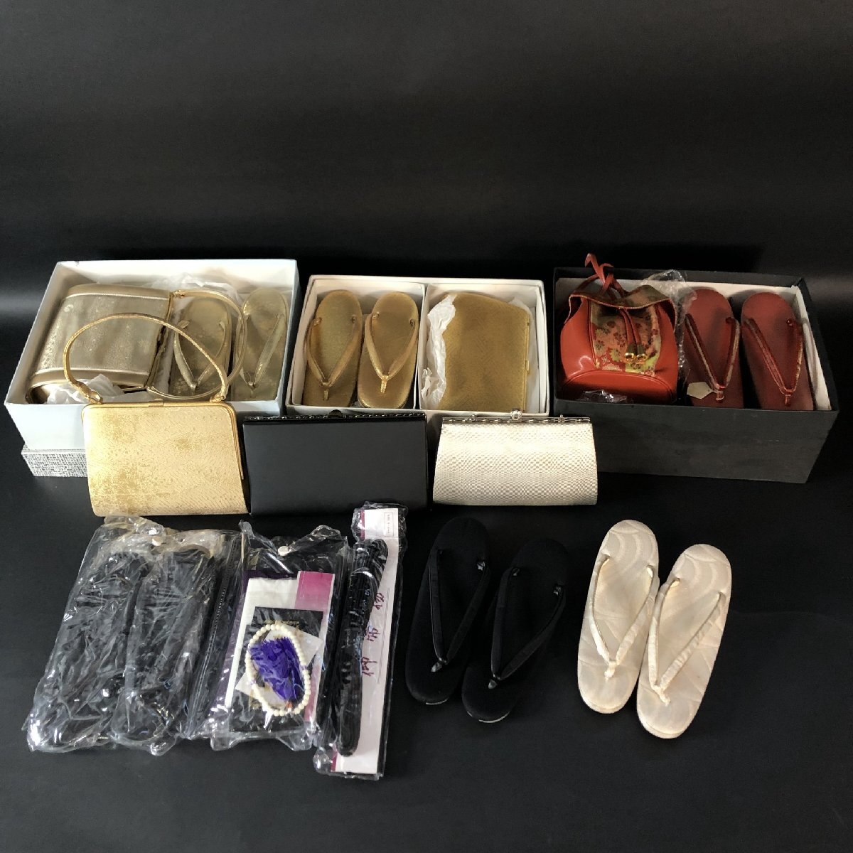 SW0129-19-3 和装小物 着物小物 まとめ 下駄 草履 鞄 ピンク ゴールド 黒 白 シルバー がま口 帯物 数珠 120サイズ