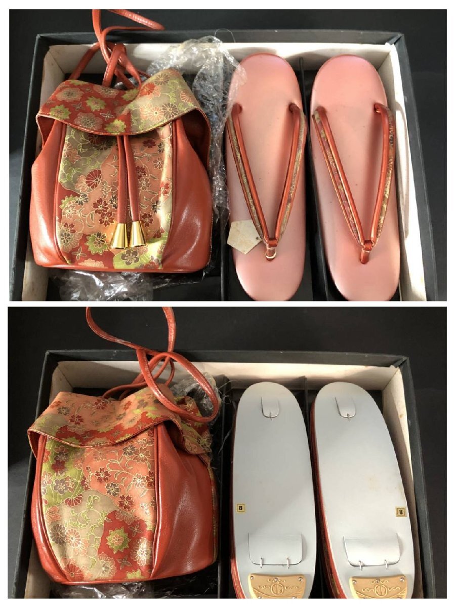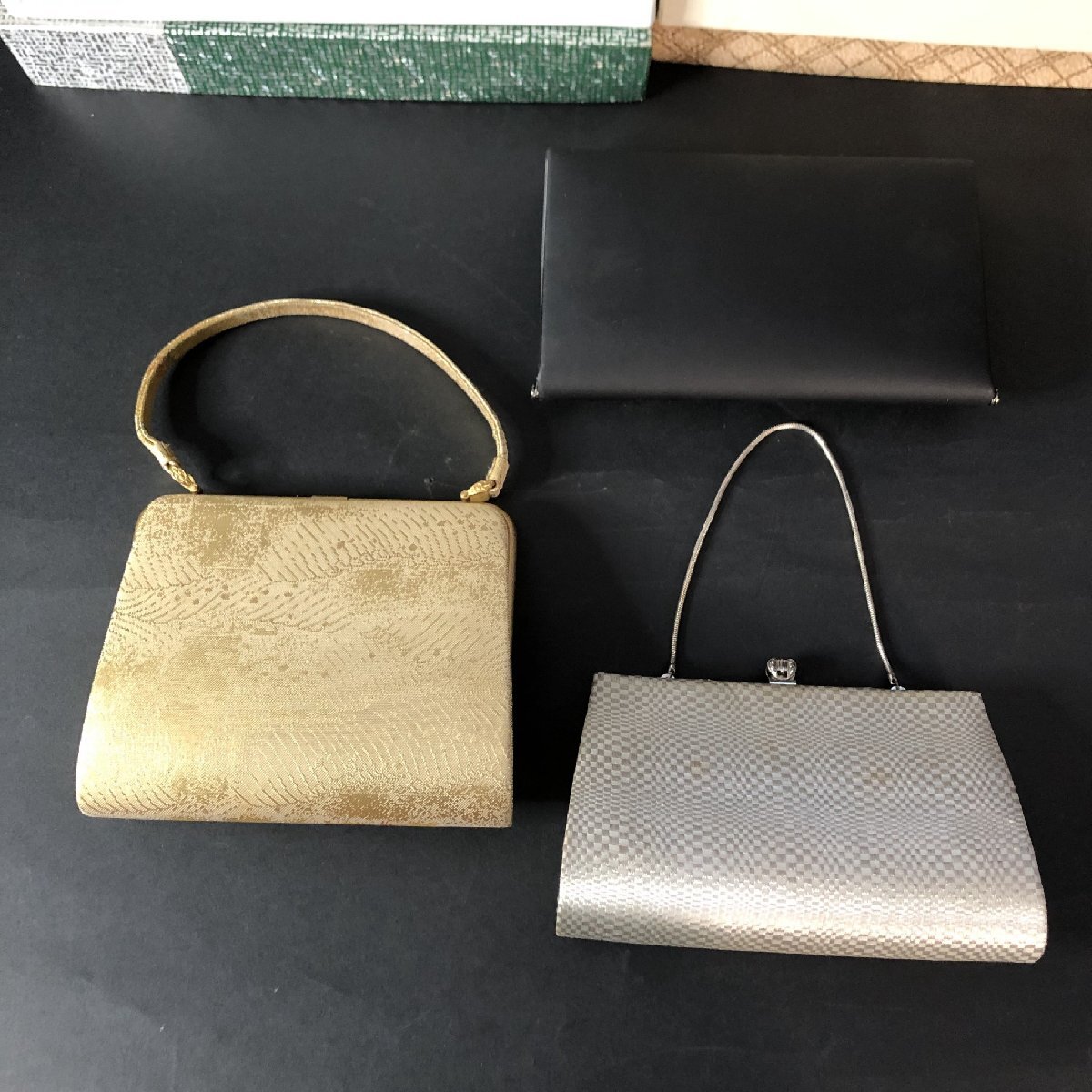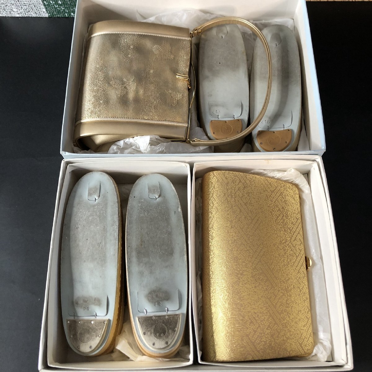 SW0129-19-3 和装小物 着物小物 まとめ 下駄 草履 鞄 ピンク ゴールド 黒 白 シルバー がま口 帯物 数珠 120サイズ