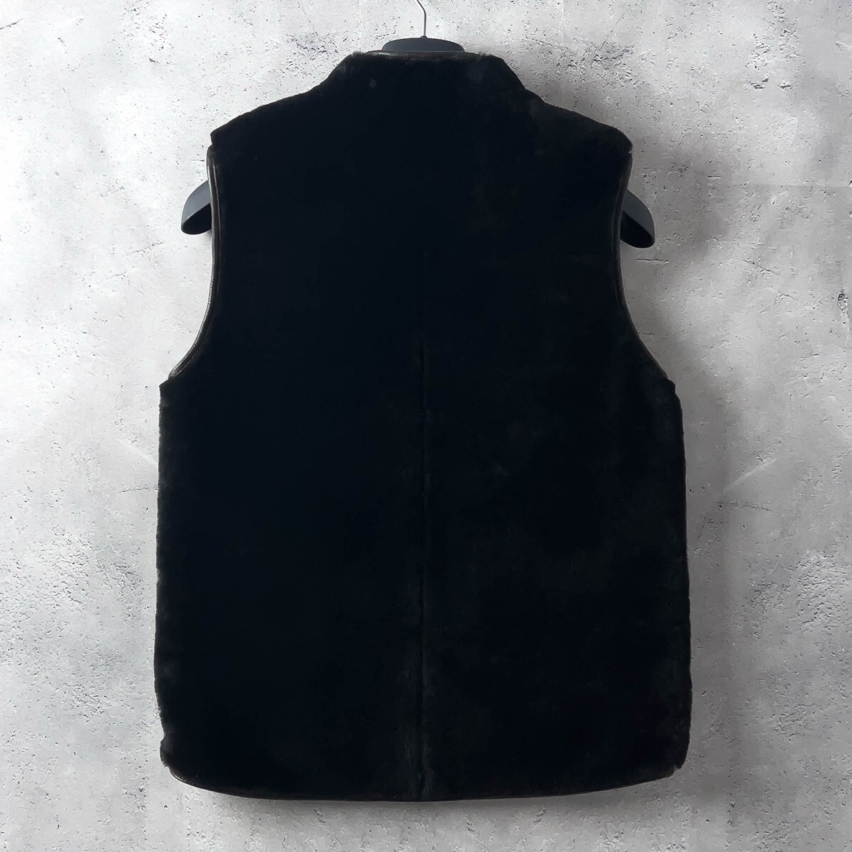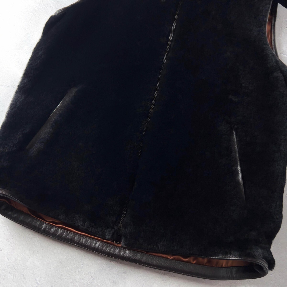 未使用級 EDIFICE エディフィス 最高級 シープスキン ムートン ベスト 羊革 レザーベスト メンズ M 黒 ブラック 裏地キュプラ 防寒 秋冬