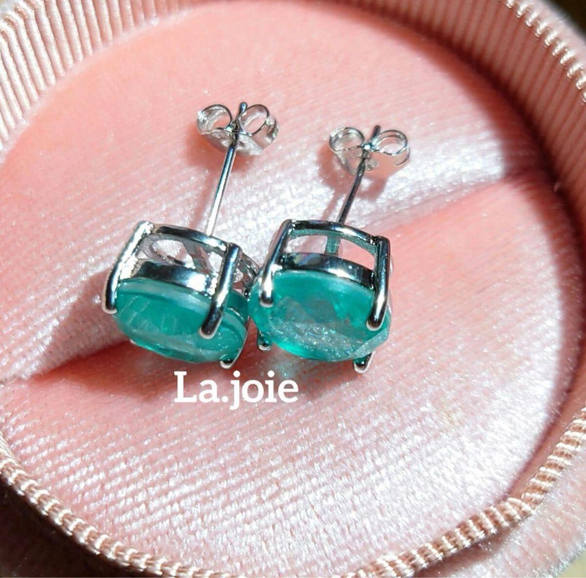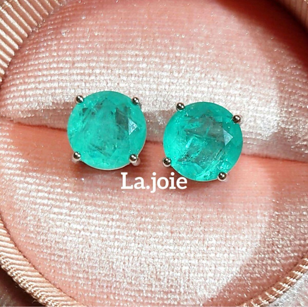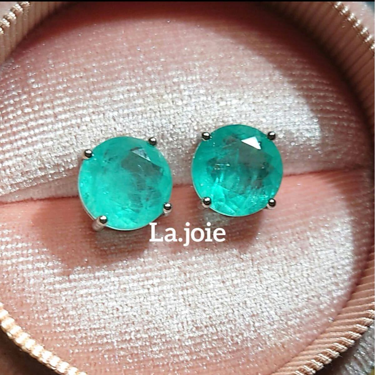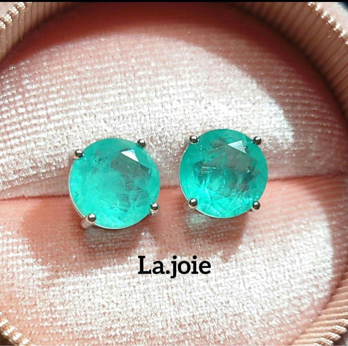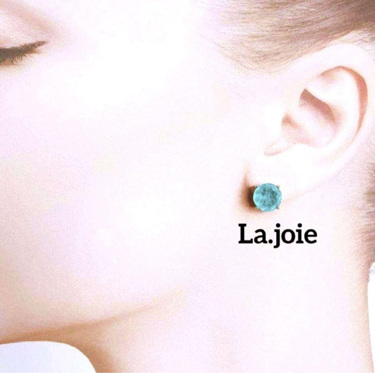 個性的なお色であるパライバトルマリンが耳元で存在感を発揮します