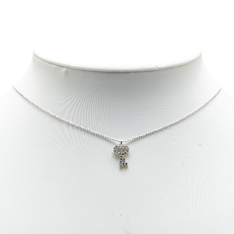 K18WG ホワイトゴールド ダイヤ0.25ct ハート 鍵 キー モチーフ ネックレス レディース 中古