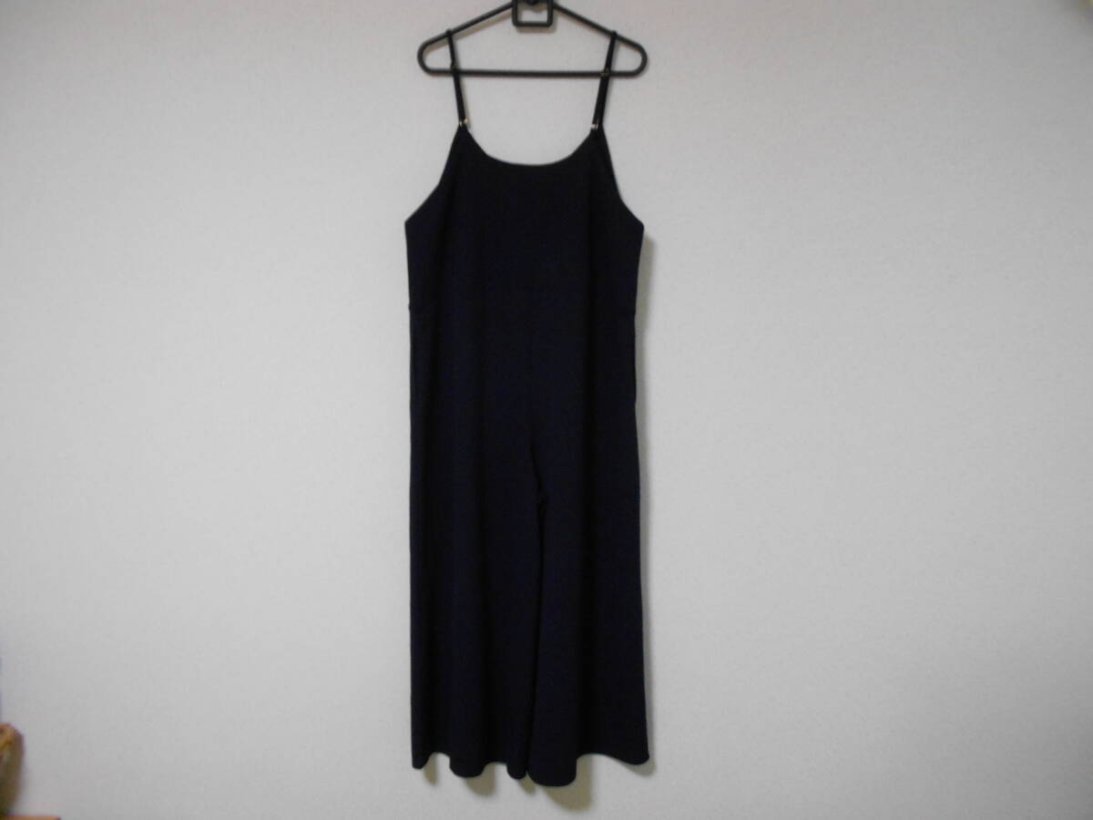 SHOO・LA・RUEシューラルー☆濃ネイビー紺のゆったり♪ガウチョパンツのサロペット☆ワイドオーバーオール☆肩紐サイズ調節可能☆L☆美品