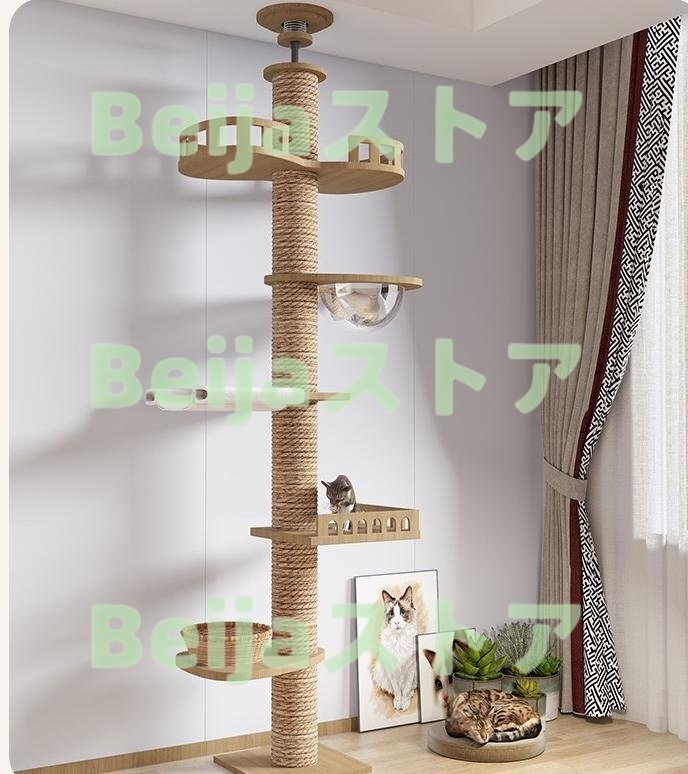 キャットタワー 突っ張り タワーキャット キャットタワー 木製 木登りタワー 宇宙船ハンモック付き シングル キャットタワー 突っ張り 猫タワー 省スペース 全縄巻き 運動不足 ストレス解消 太い支柱 多頭飼い 安定性良い 猫ツ I 220~230cm