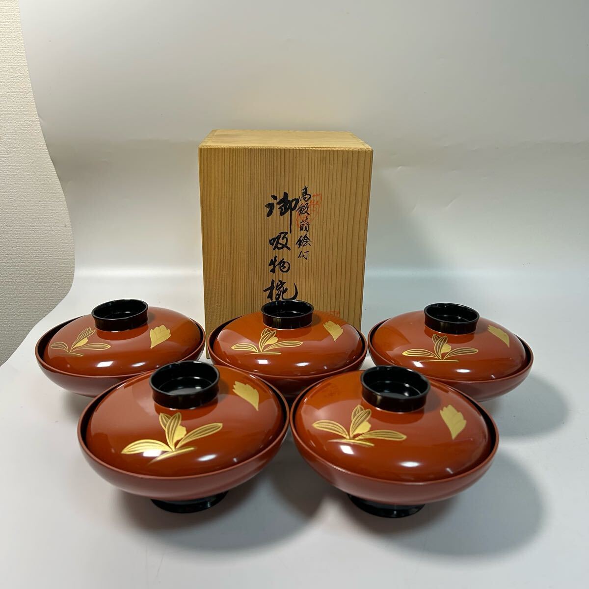 吸物椀 5客セット 蒔絵 小槌吸椀 和食器 お椀 漆器 汁椀 蓋付 漆器  伝統工芸 マ11