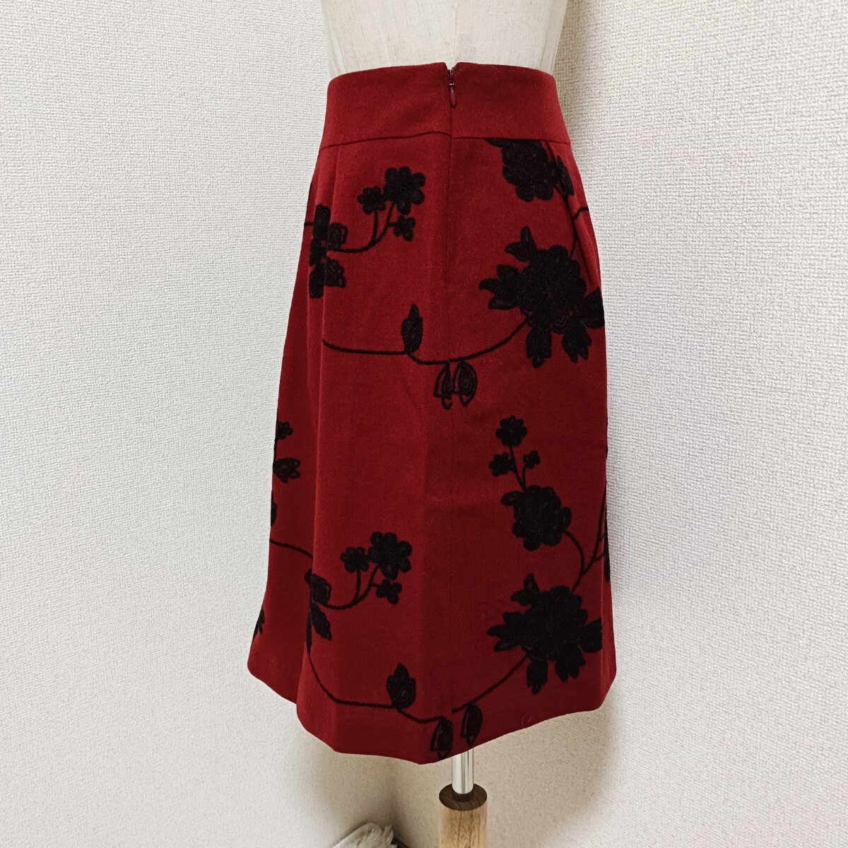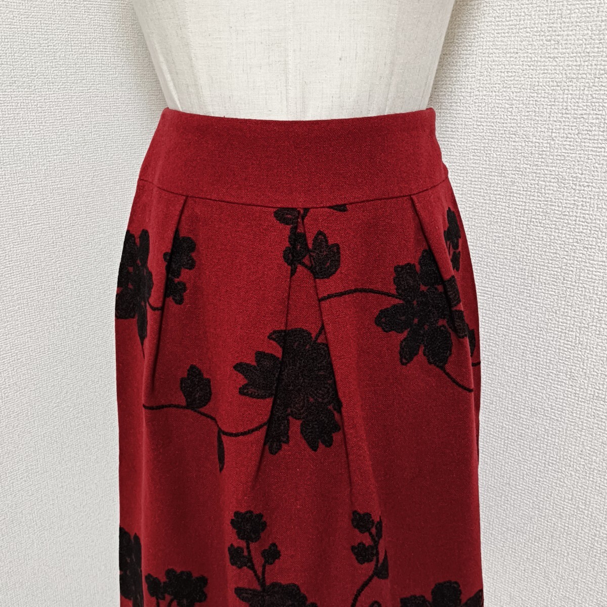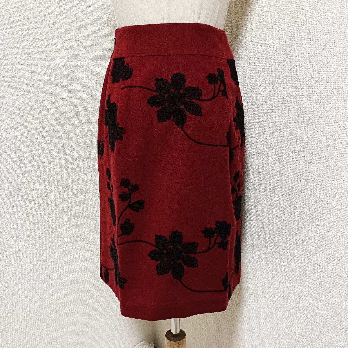 美品 タイトスカート ひざ丈 花柄刺繍 赤色 王室御用達 36 レディース