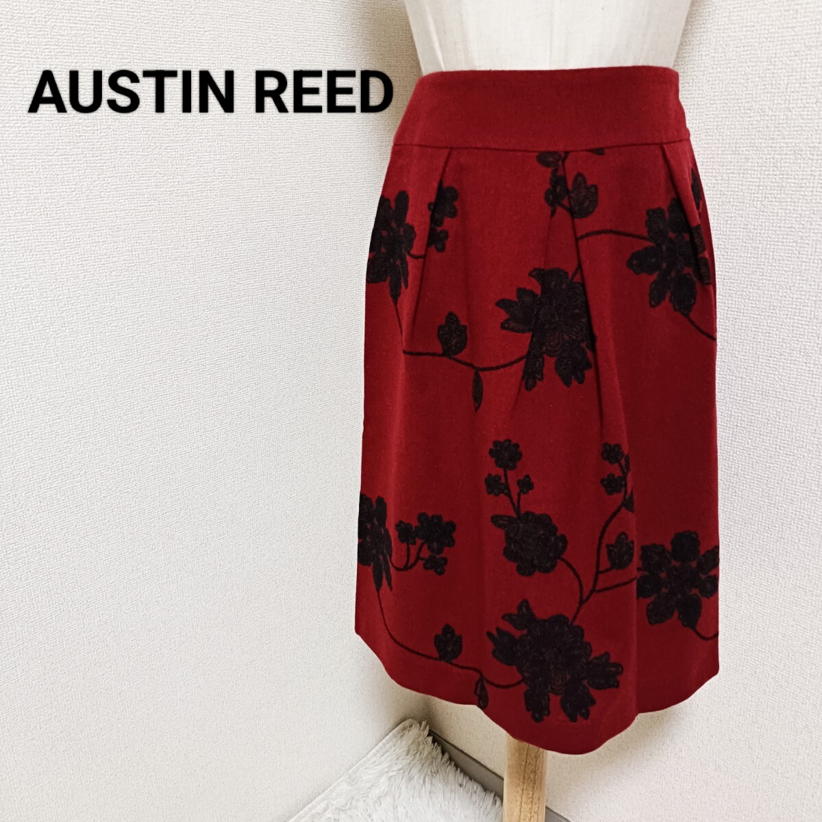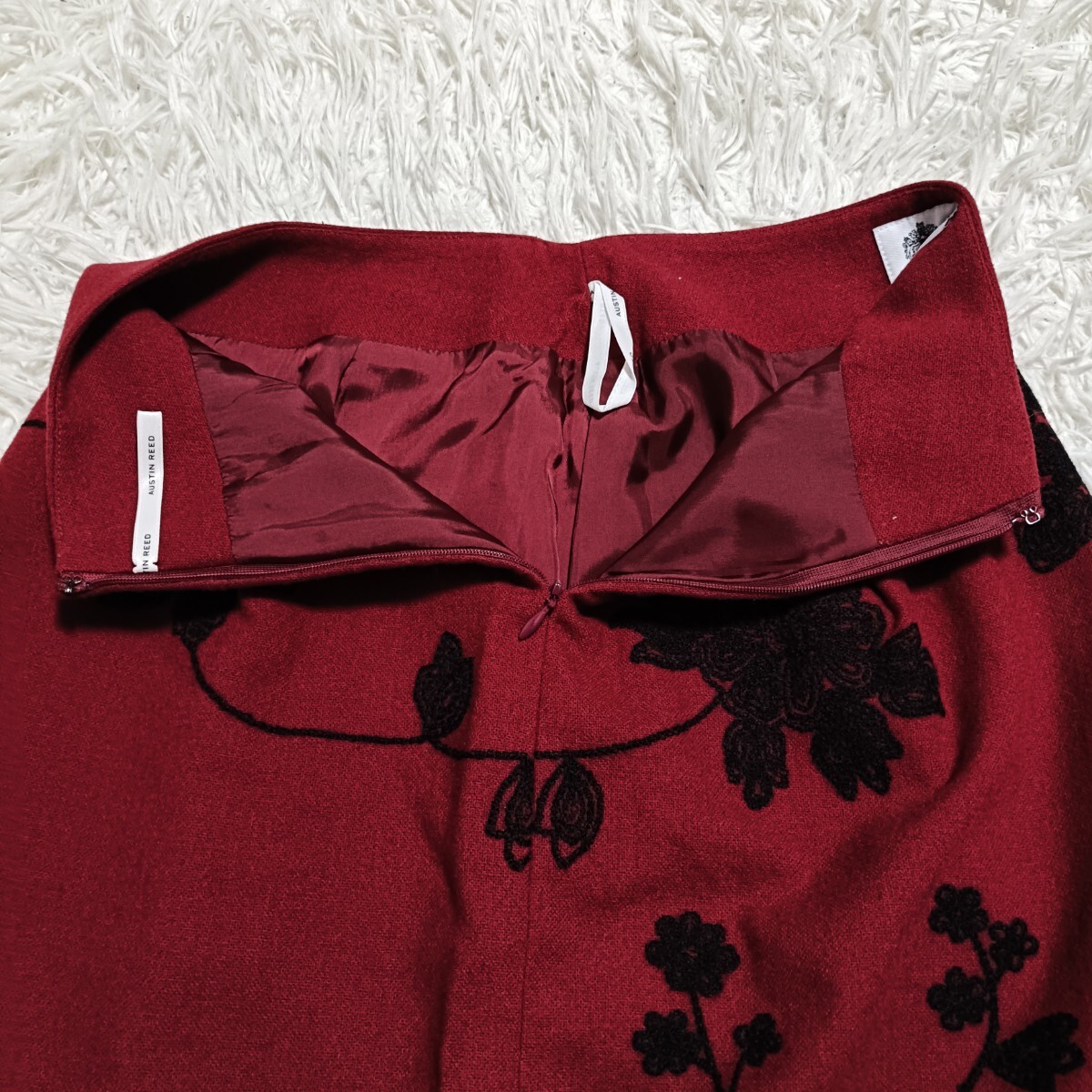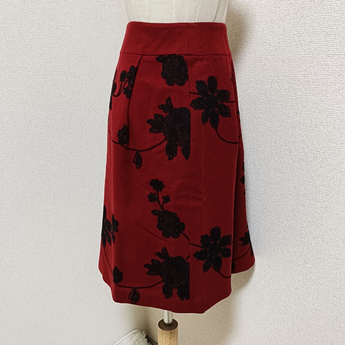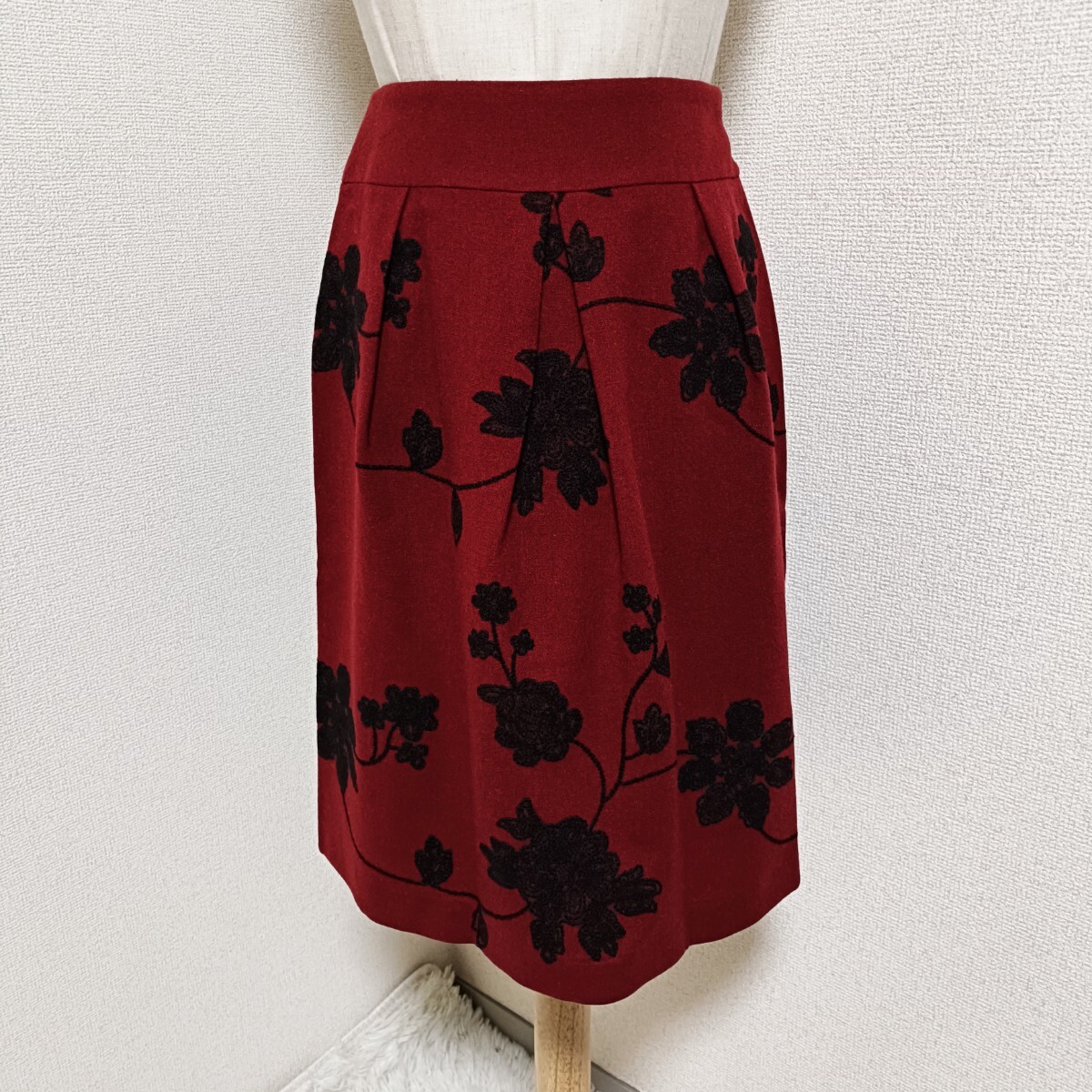 美品 タイトスカート ひざ丈 花柄刺繍 赤色 王室御用達 36 レディース
