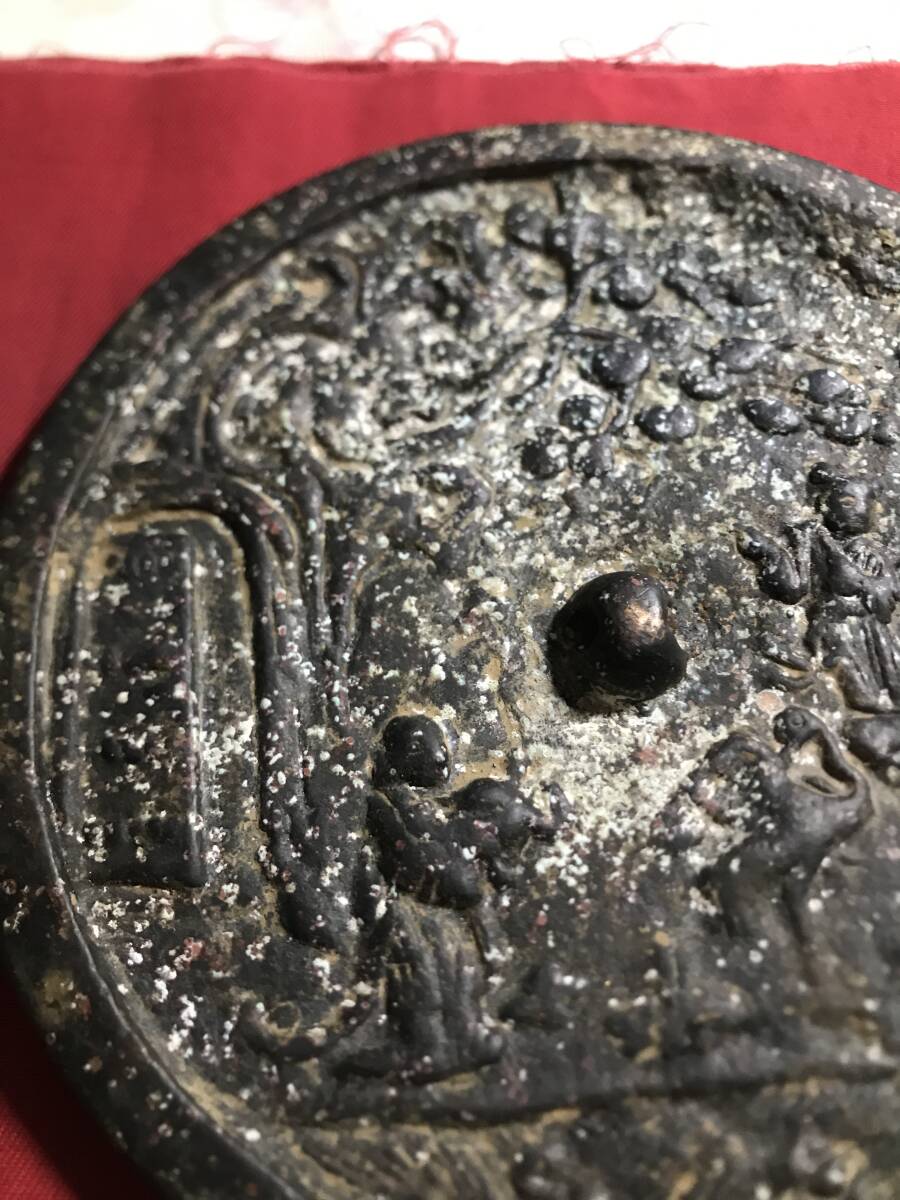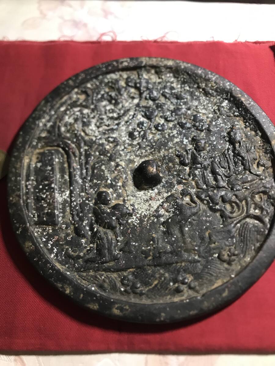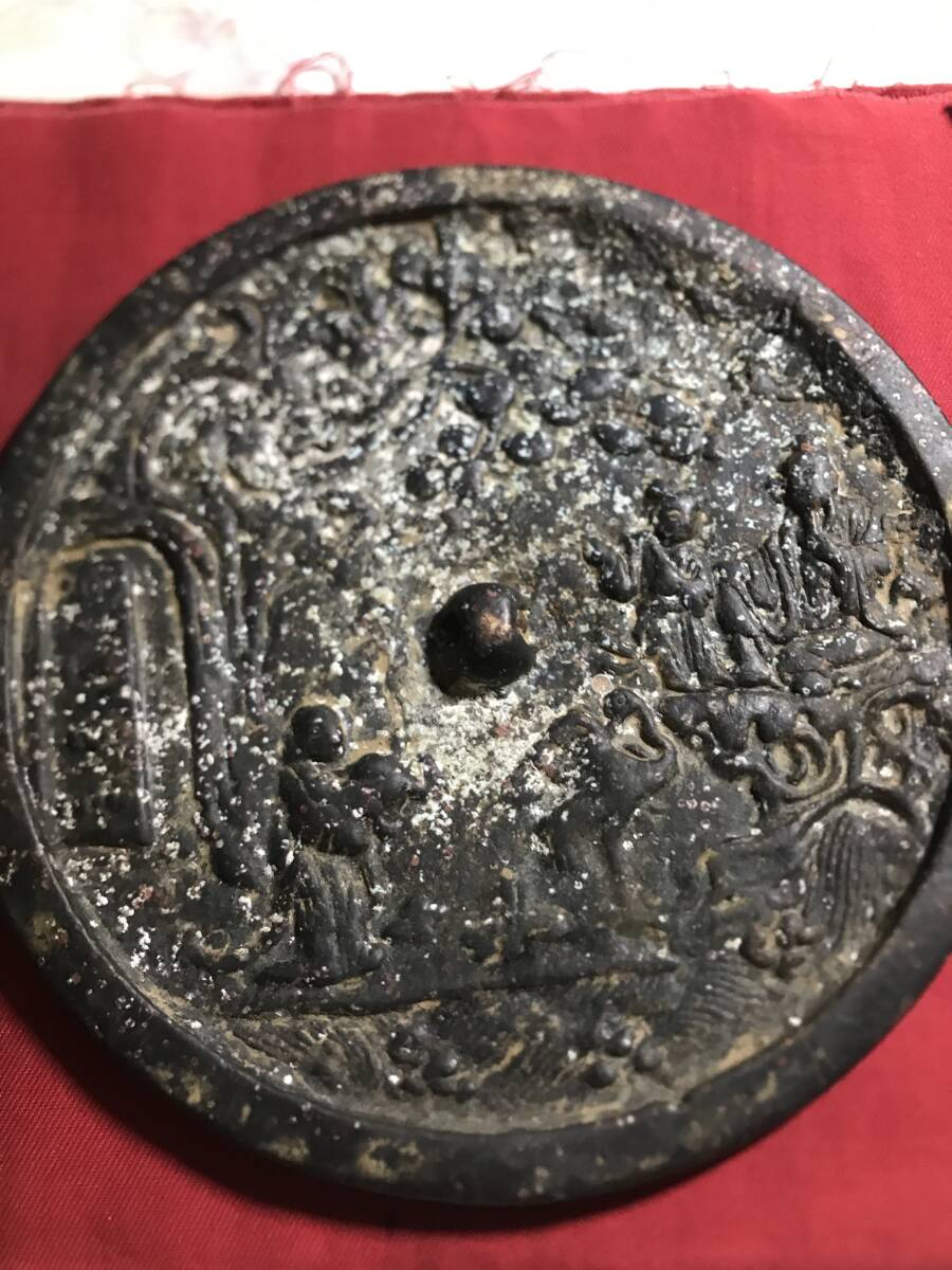 銅鏡  人 動物 鹿 などなど  かなり大きい   時代物  珍しい  中国 超絶技巧 古置物 古美術