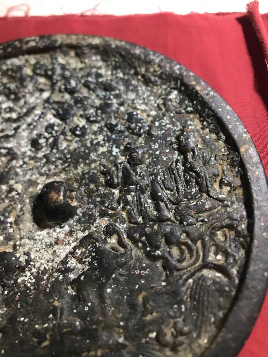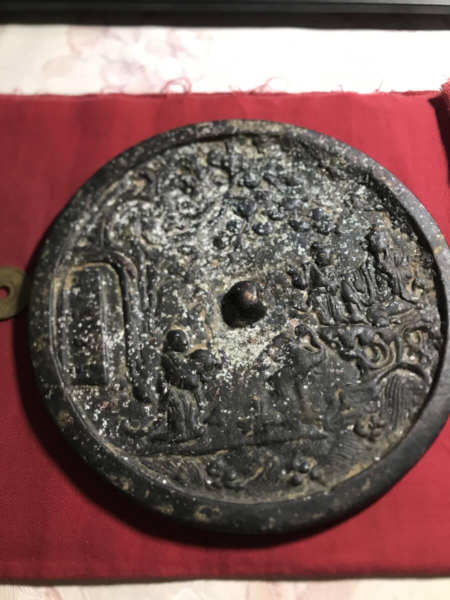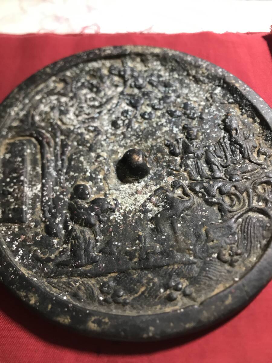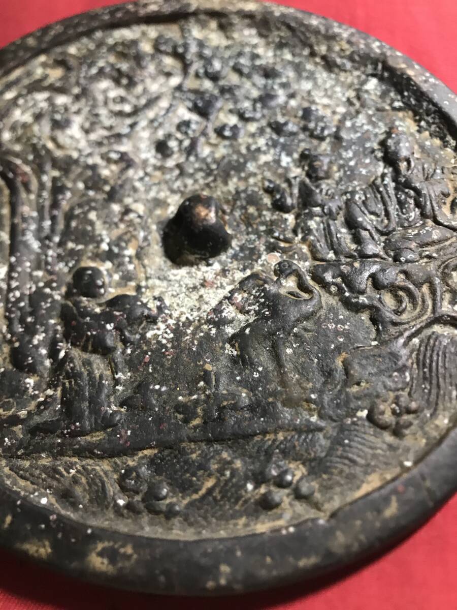 銅鏡  人 動物 鹿 などなど  かなり大きい   時代物  珍しい  中国 超絶技巧 古置物 古美術