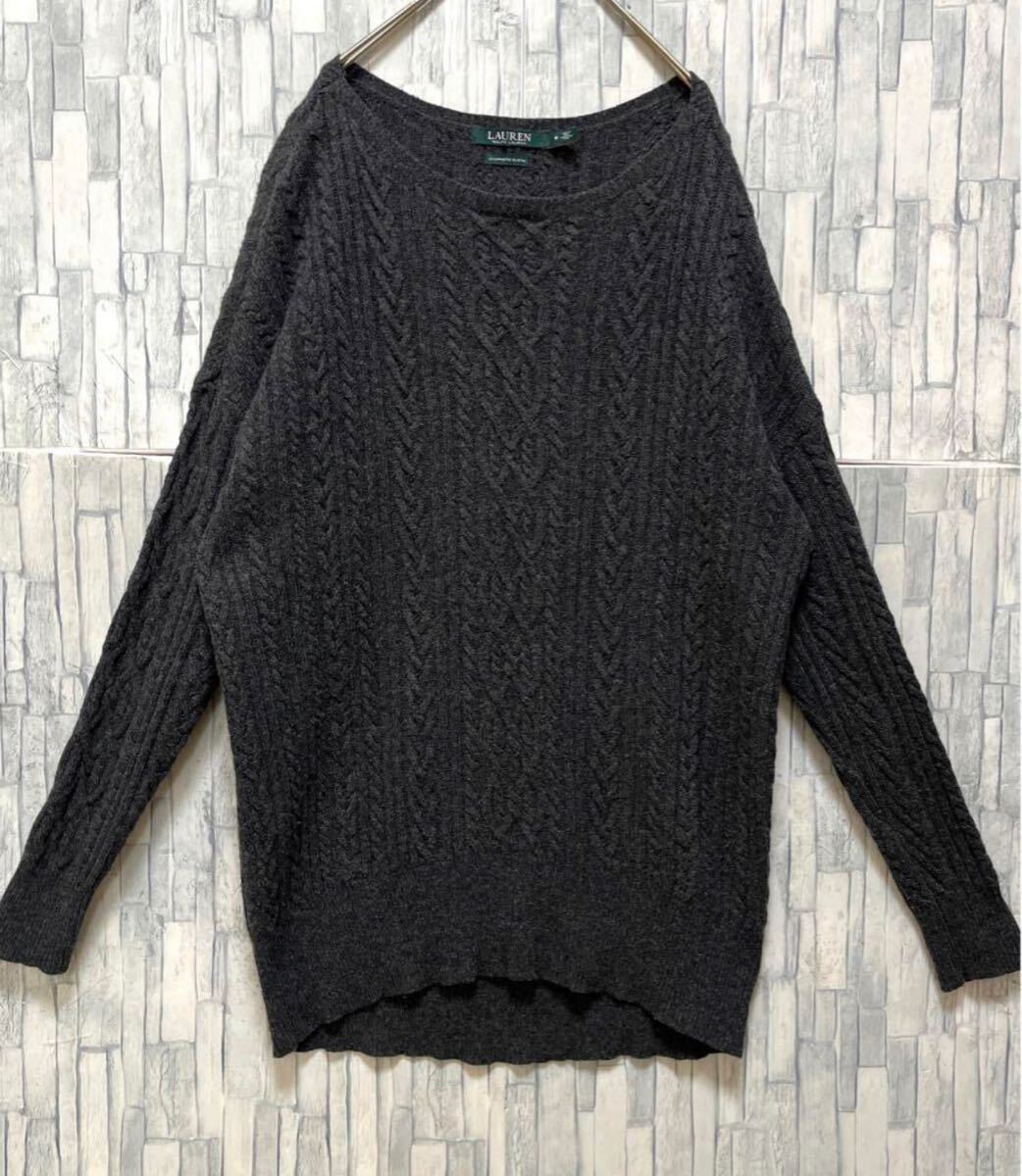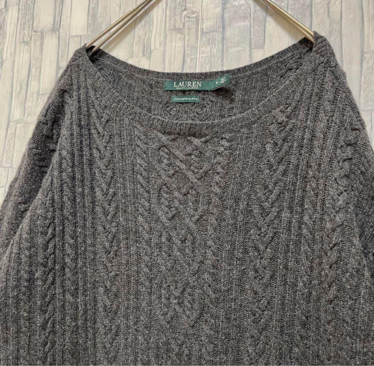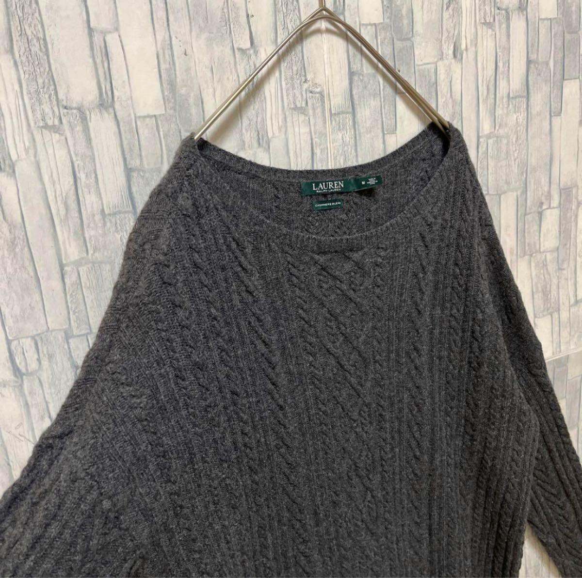 LAUREN RALPH LAUREN ラルフローレン 長袖 ケーブルニット セーター 編み込み カシミヤ混 サイズM 無地 送料無料の出品です。