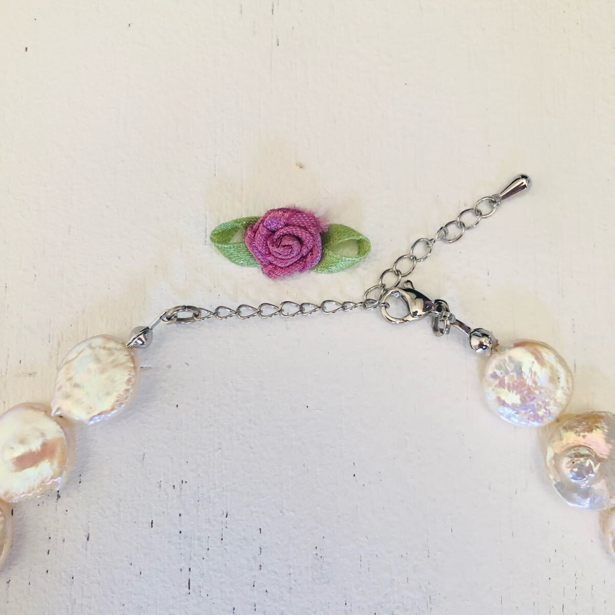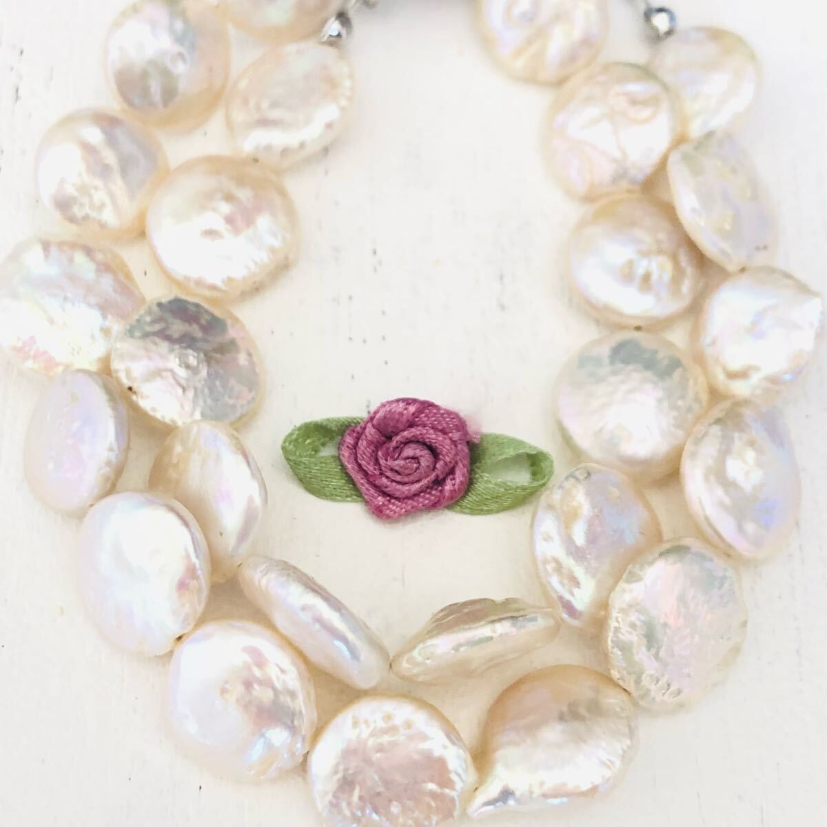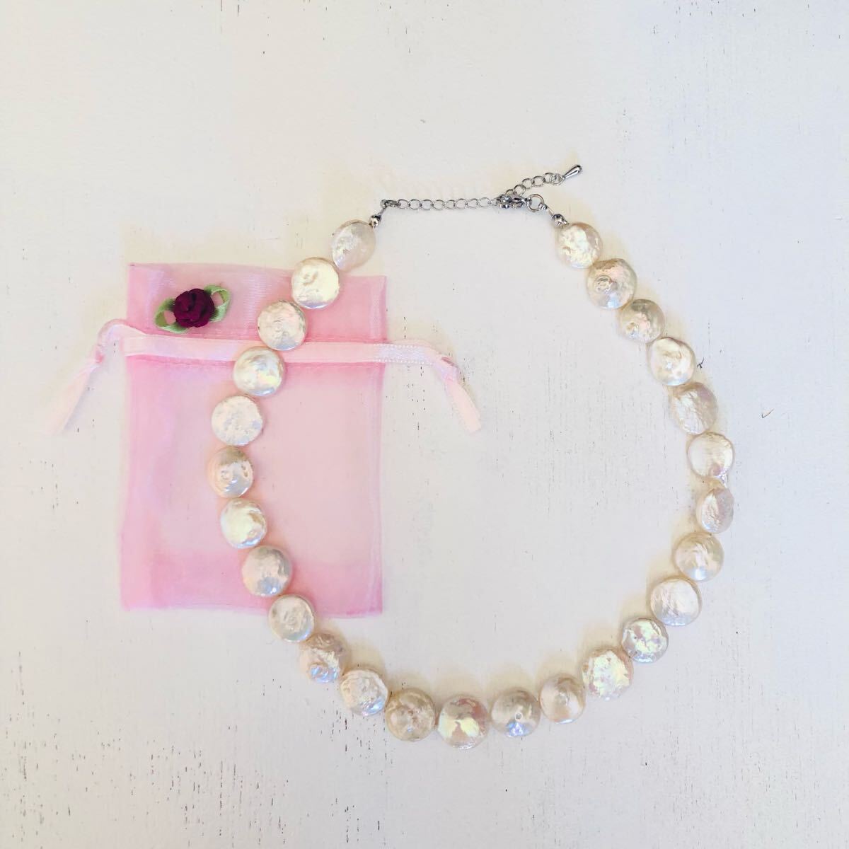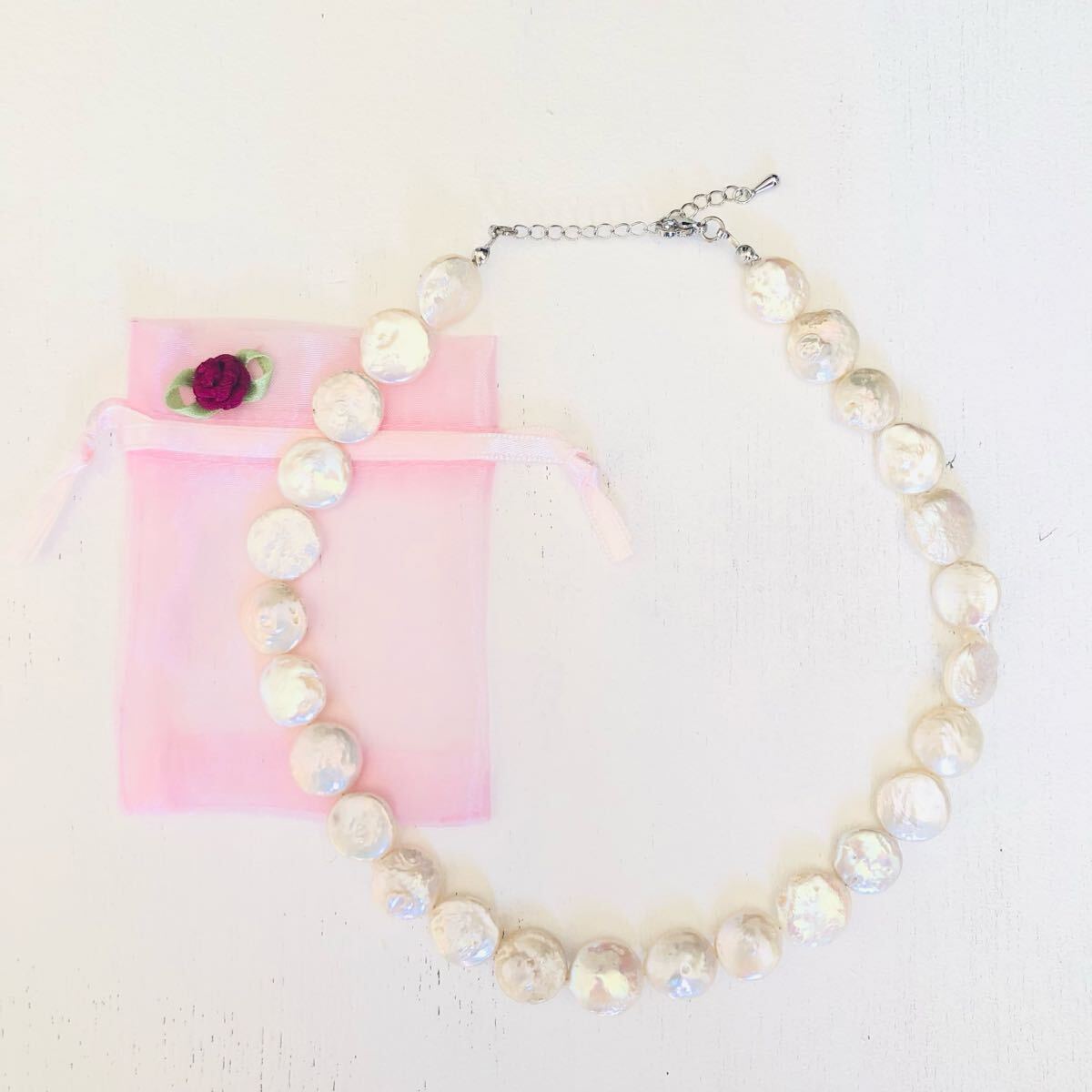 ※色は白の淡水パールバッロックネックレスですが、角度によって少し薄いピンクの様に見えたりします。