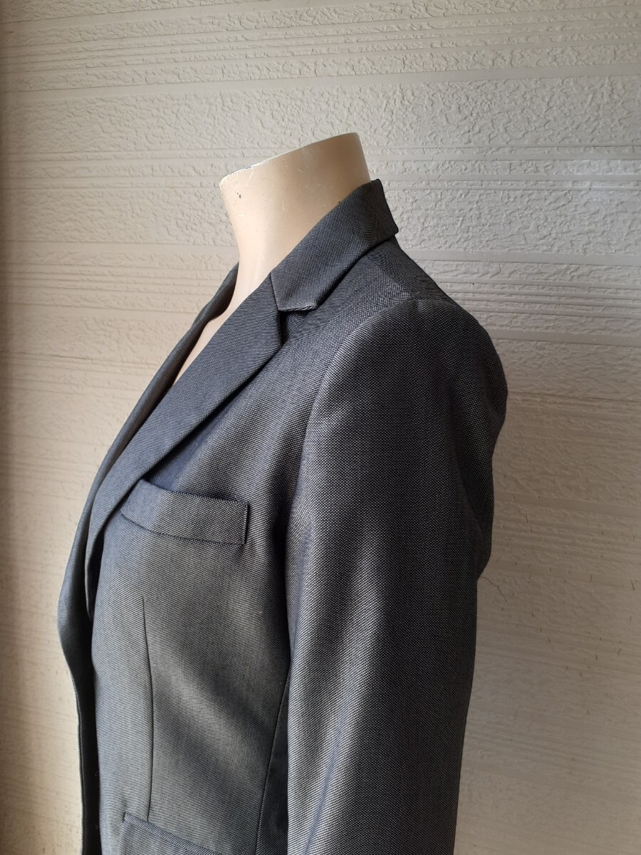 ※実寸: 肩幅 39cm 身幅 45cm 袖丈 60cm ウエスト 37cm ヒップ 45cm 着丈 65cm 後ろ裾センターベント 16cm ポケット 15&11cm