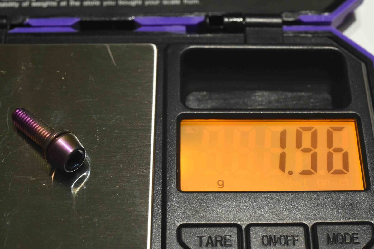 1本1.9g(工業製品ですので誤差はあります)のステム用超絶軽量チタンボルトM5×16mmです。