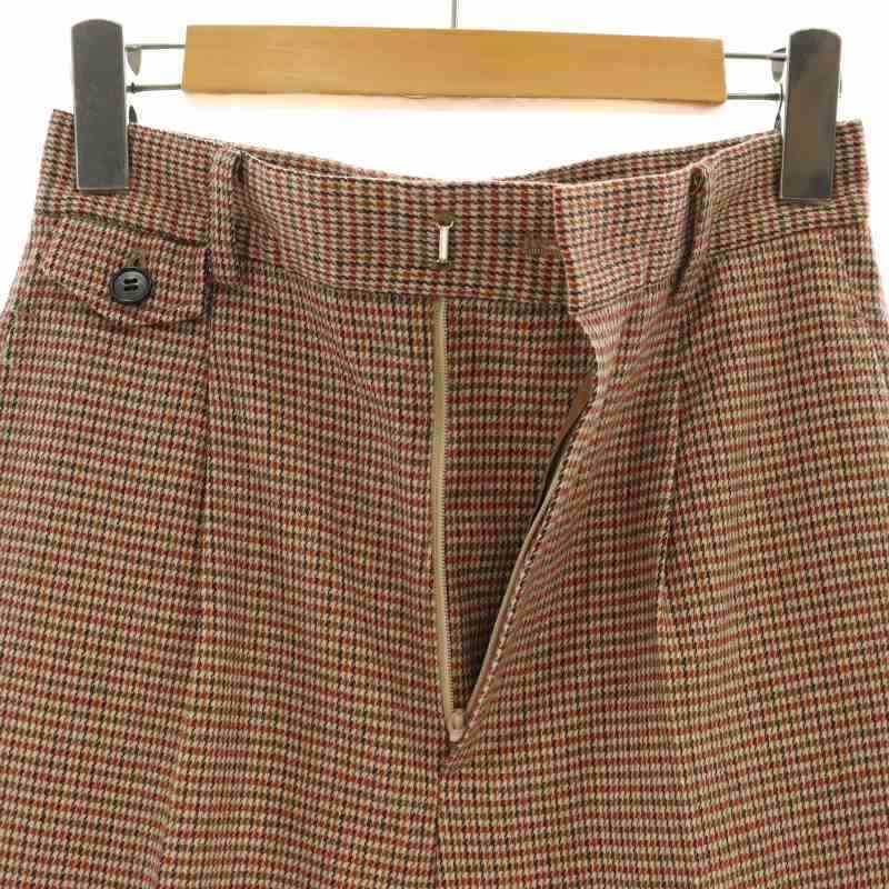 アクアスキュータム AQUASCUTUM WLチェックサキソニー ワイドパンツ 1タック ウール S 赤 レッド /KO ■OS レディース