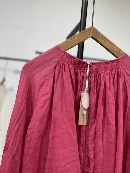 yq 2502 ローズレッド チュニック ワイシャツ トップス 無地 麻綿混 ゆったり 気心地抜群 オシャレ フリーサイズ ナチュラル