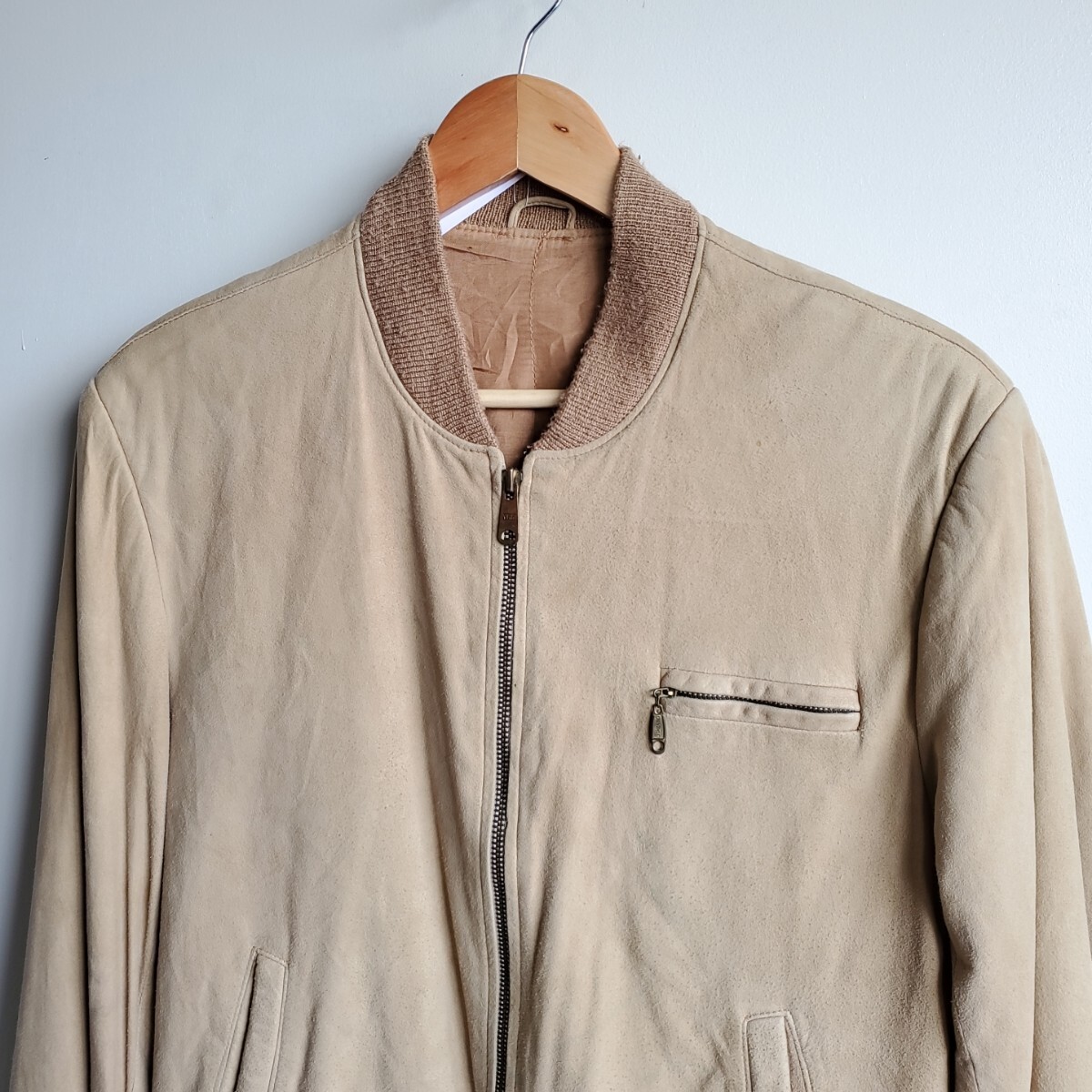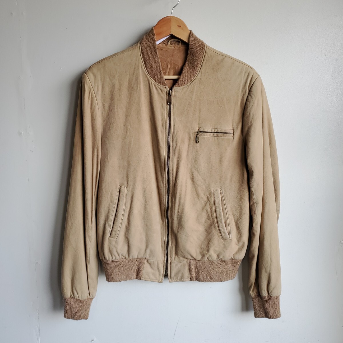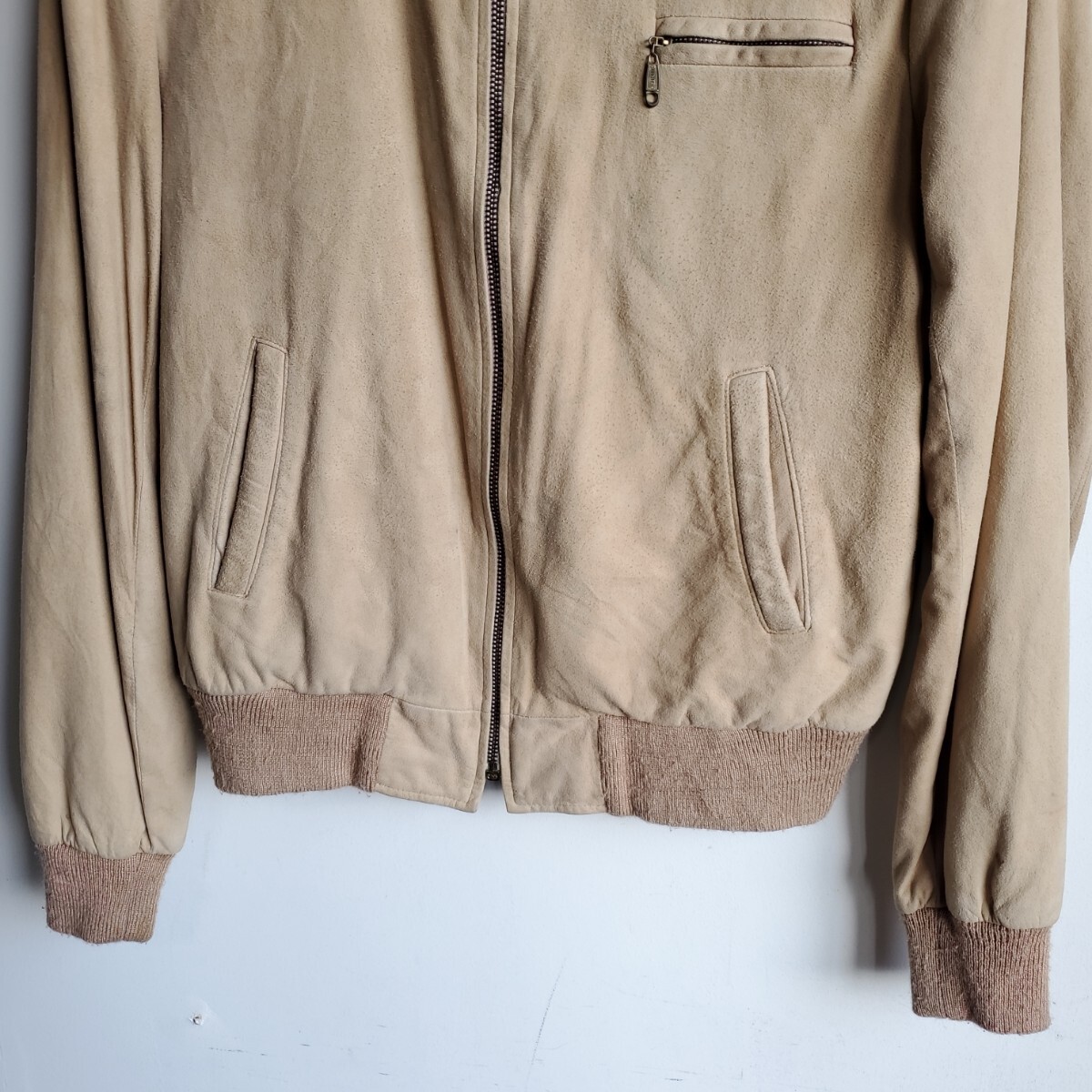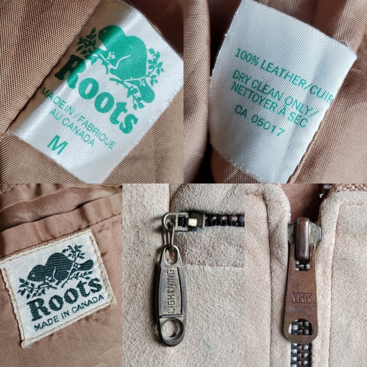 H10◆【sizeM】カナダ製 Roots ルーツ レザーブルゾン ベージュ 本革 レザー USED 中古 ジップアップ LIGHTNING