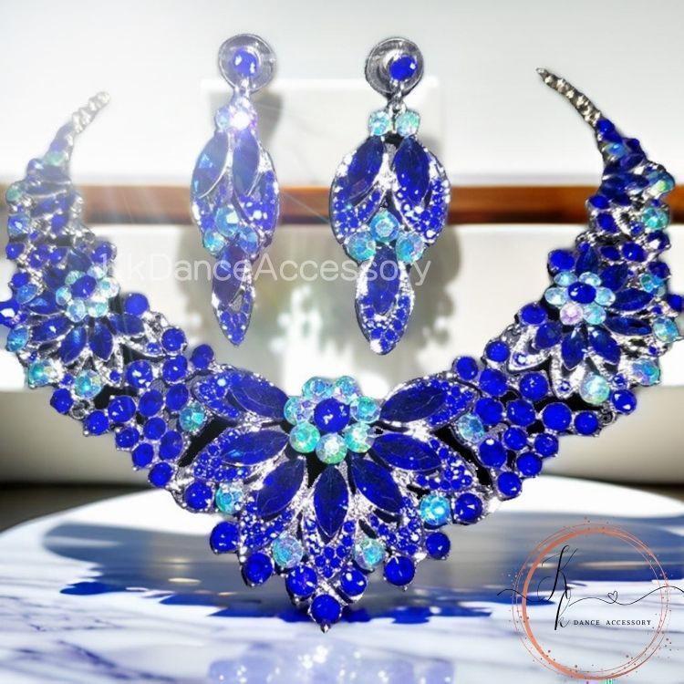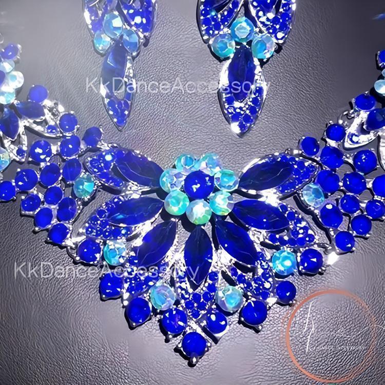 「オーシャン・ミスティーク・セット」は、深い海の青を思わせる鮮やかなブルーのクリスタルをふんだんに使用した、豪華で洗練されたデザインのジュエリーセットです。ネックレスとイヤリングのセットで、特別な日の装いを華やかに引き立てます。大ぶりのクリスタルが揺れ、デコルテを美しく見せるデザインが特徴。職人の熟練した手作業で、一つ一つ丁寧に作られています。特別な瞬間をさらに輝かせる、心を込めて作られたアイテムです。
