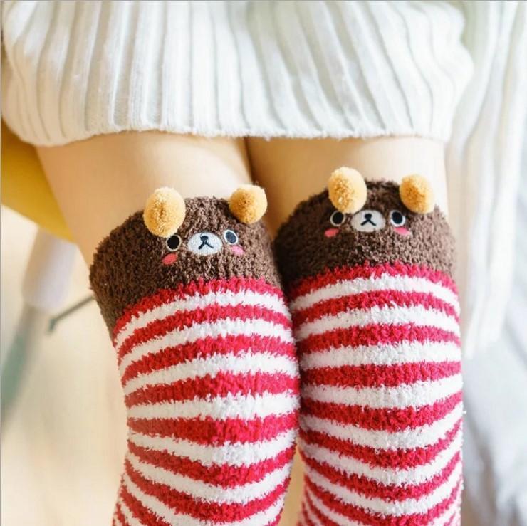 キュートなアニマル柄がなんともかわいい、モコモコ素材が心地よいルームソックスです。
