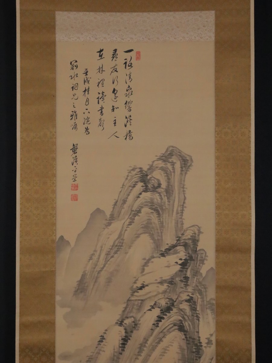 【模写】吉】11943 大槻磐渓 山水画賛 砲術家 儒者 仙台藩 奥羽越列藩同盟 書家 中国画 掛軸 掛け軸 骨董品
