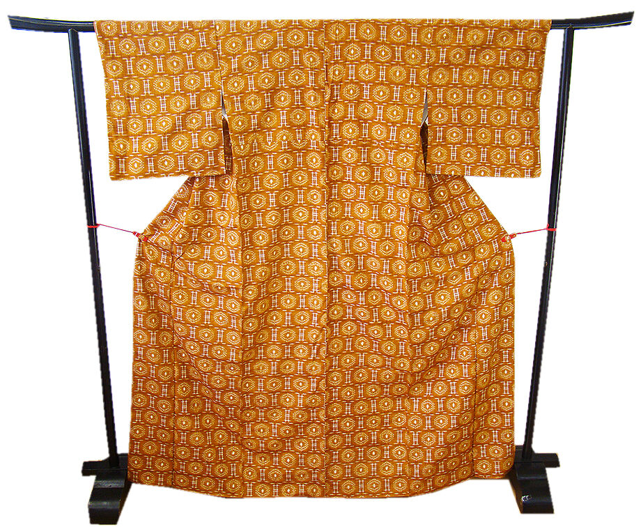| 商品説明 | こちらのお品は「袷」ですので10月から5月までお召頂ければと思います。 海に囲まれ、豊かな自然のなかで育まれた素朴で温もりを感じさせる その風合いが着物通の方々の心を魅了する、沖縄県伝統工芸品の「琉球絣」です。 しなやかな手触りの中にさらりとして心地良いハリのあるその独特の風合。 シャキッとした素材感はサラッとした着心地が魅力的の伝統工芸品の琉球絣。 シワになりにくく、日中のお出かけにも気兼ねなくお召し頂けます。 明るい土色地に白色の織柄、 落ち着いた雰囲気を醸すシックな色彩を基調に、一面にシンプルな絣を織り成しました。 民芸的でありながらも都会の街並みにもピッタリと調和する小粋な仕上がりとなっております。 八掛は江戸茶色(正絹)、幅広い年代の方にお召頂けます、 残念ながら証紙・残布はございませんが手触りや織等から琉球絣だと思われます。 |