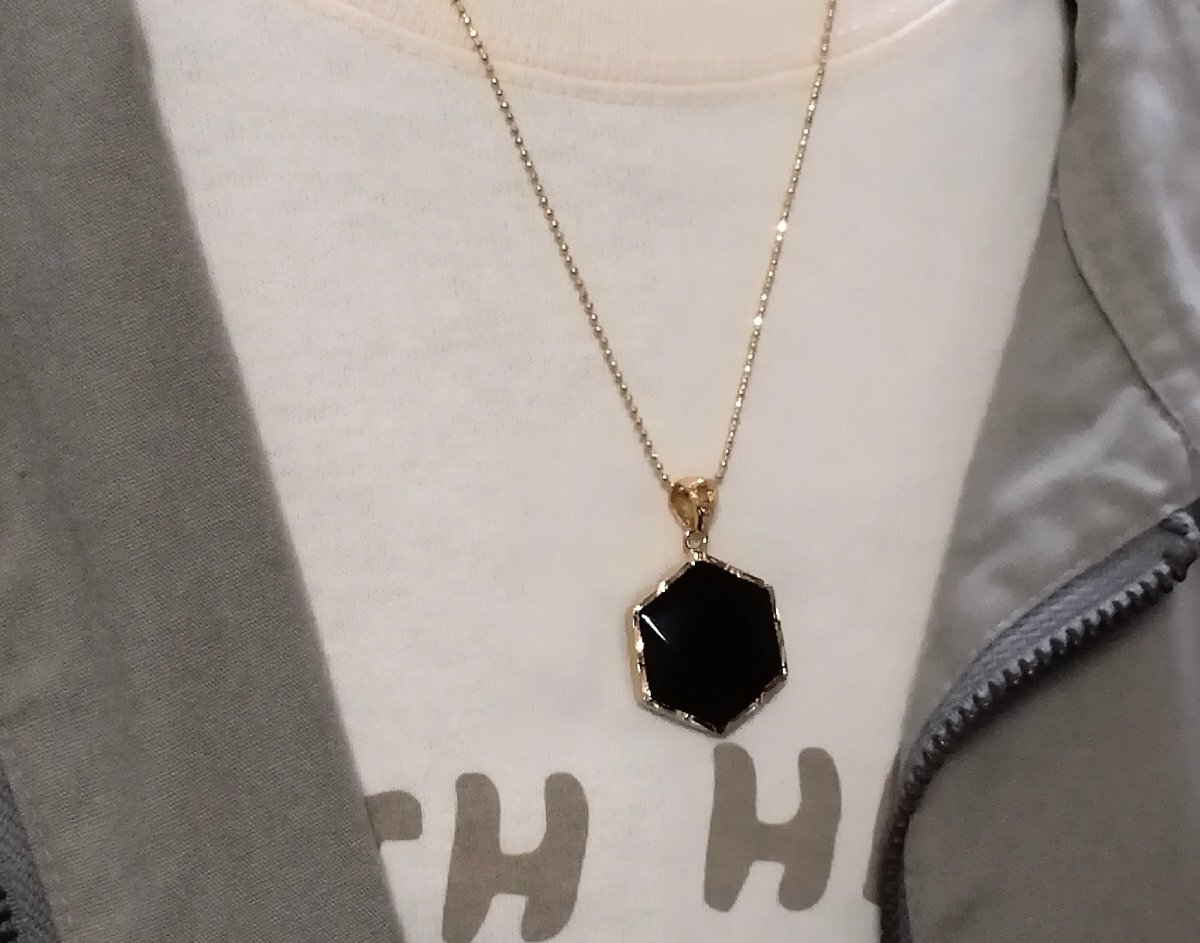 ◆素材:シルバー925 石:★希少 黒隕石テクタイト 六芒星 ペンダントトップ ★【中国雲南省産】 ★約6g ◆チェーン は、シルバー925製のネックレスチェーンを、 高級感のあるK18ゴールド (18kGP仕上げ ) 仕上げです。 ★「925」の刻印入りです ★癒やし・金運・仕事運 |