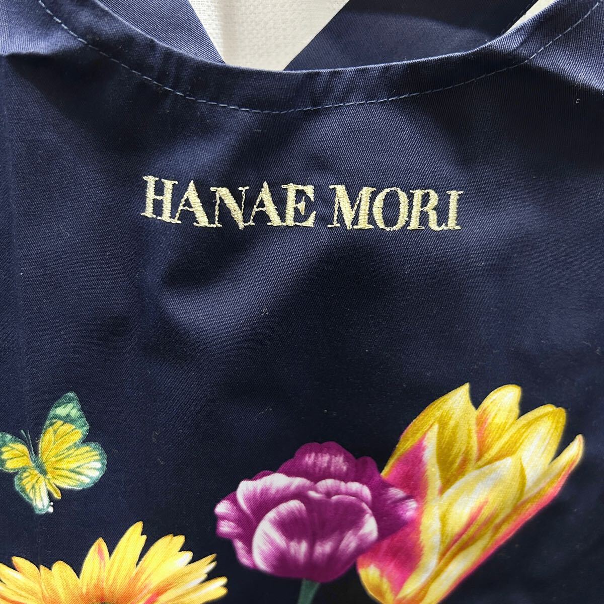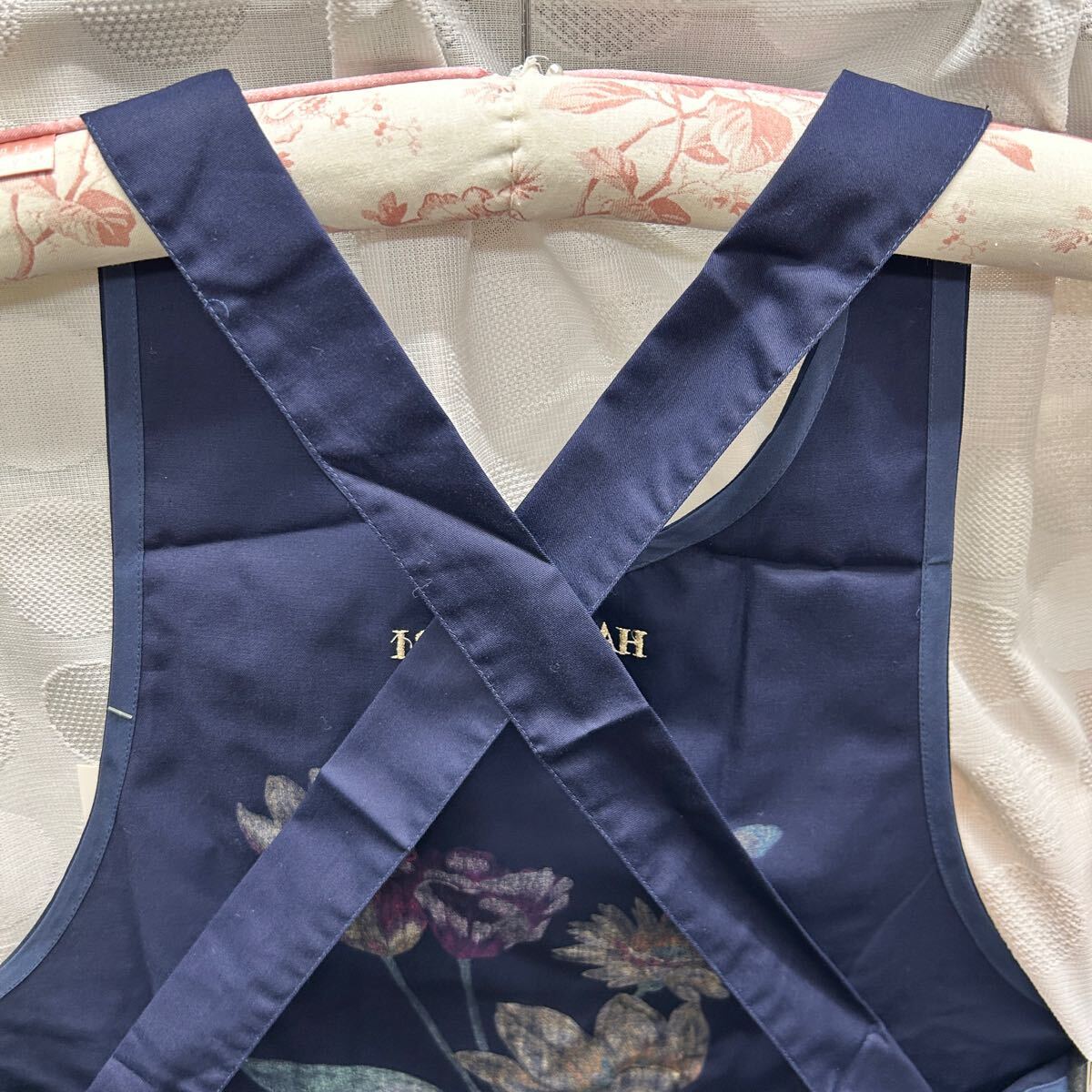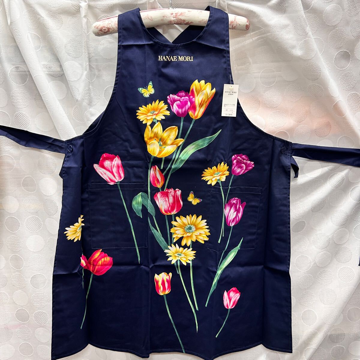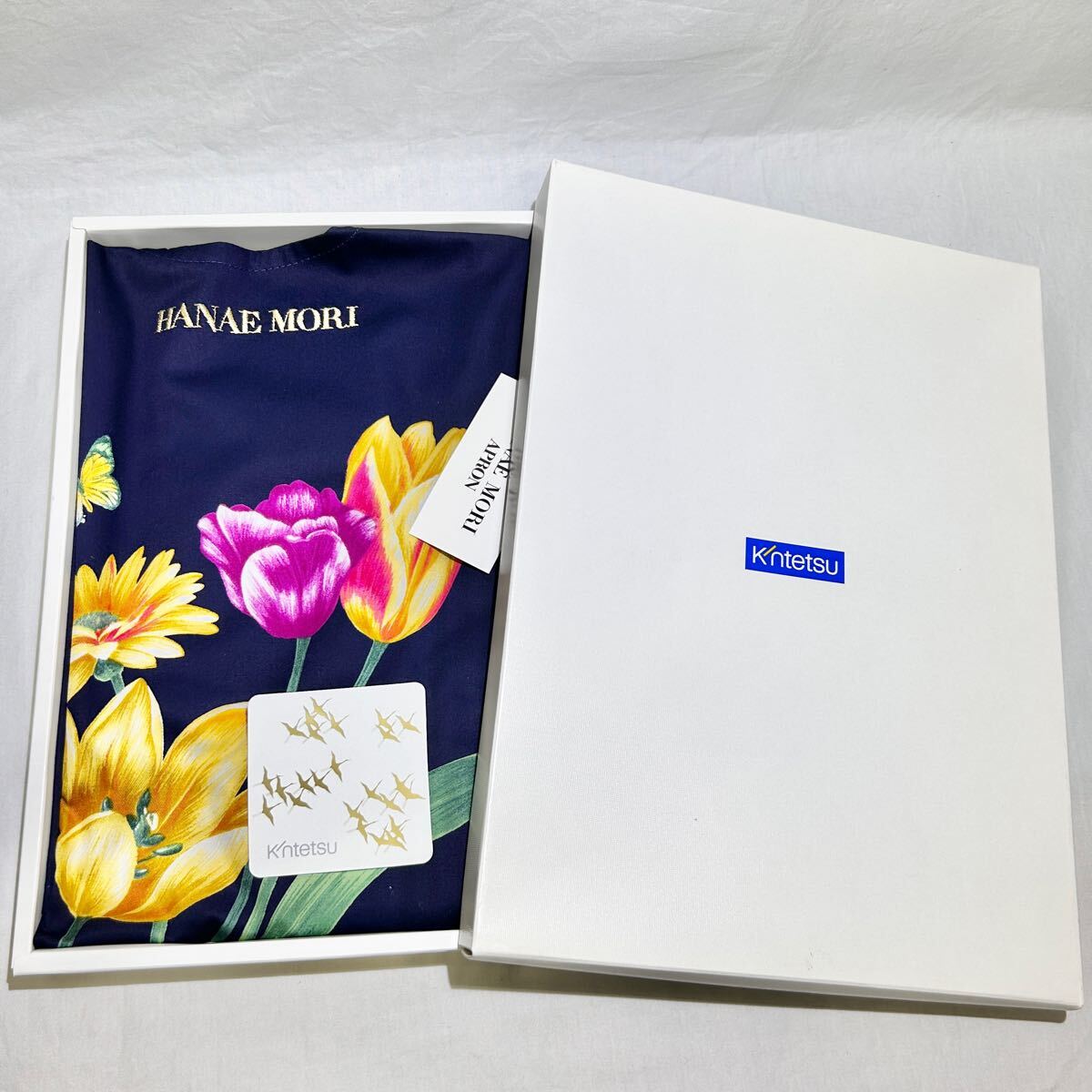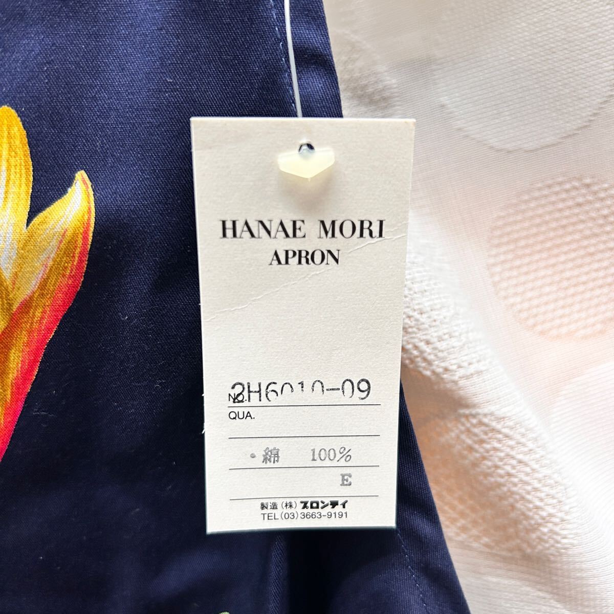 ★未使用品★新品 HANAE MORI エプロン ネイビー 花柄 綿100% 刺繍ロゴ Kintetsu 近鉄 百貨店 レディース ギフト (03277C