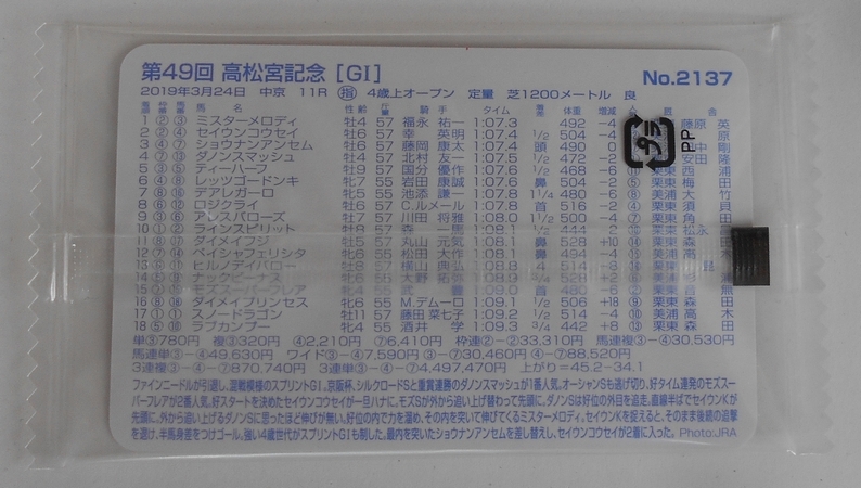 ◎まねき馬カード No.2137 第49回高松宮記念(未開封)ミスターメロディ
