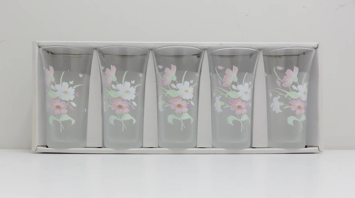 ☆保管品☆タンブラー 5個まとめ 日本製 花模様 昭和レトロ ミニタンブラー 一口グラス ビアグラス |