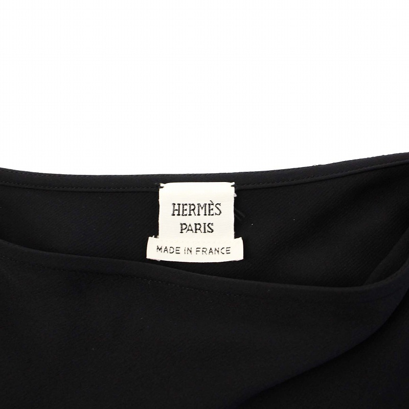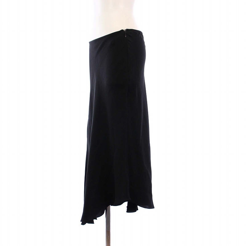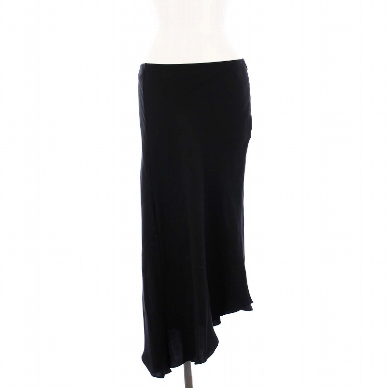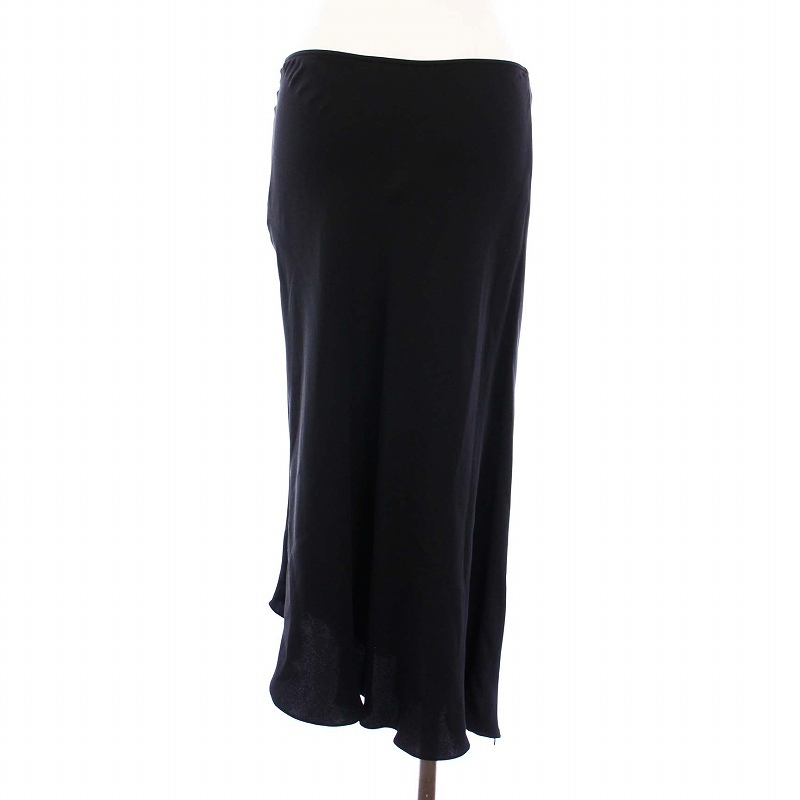 エルメス HERMES ロングスカート イレギュラーヘム シルク 38 ブラック /KH ■KH レディース