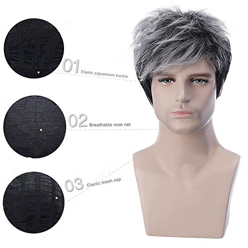 商品名 | メンズ ウィッグ 男性用ウィッグ かつら フルウィッグ ショート 短い かつら 男性 ウィッグ ビジネス 自然 通気 耐熱 グラデーション |