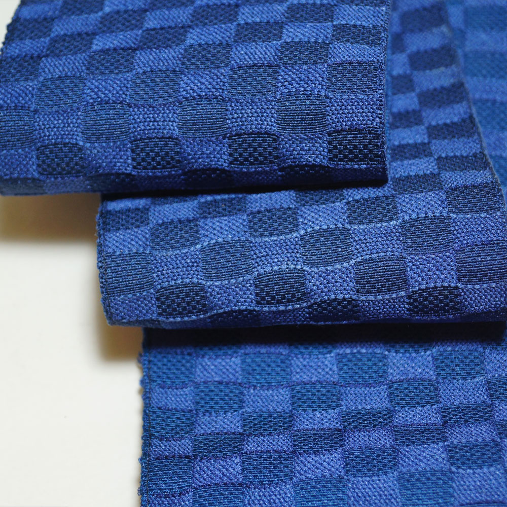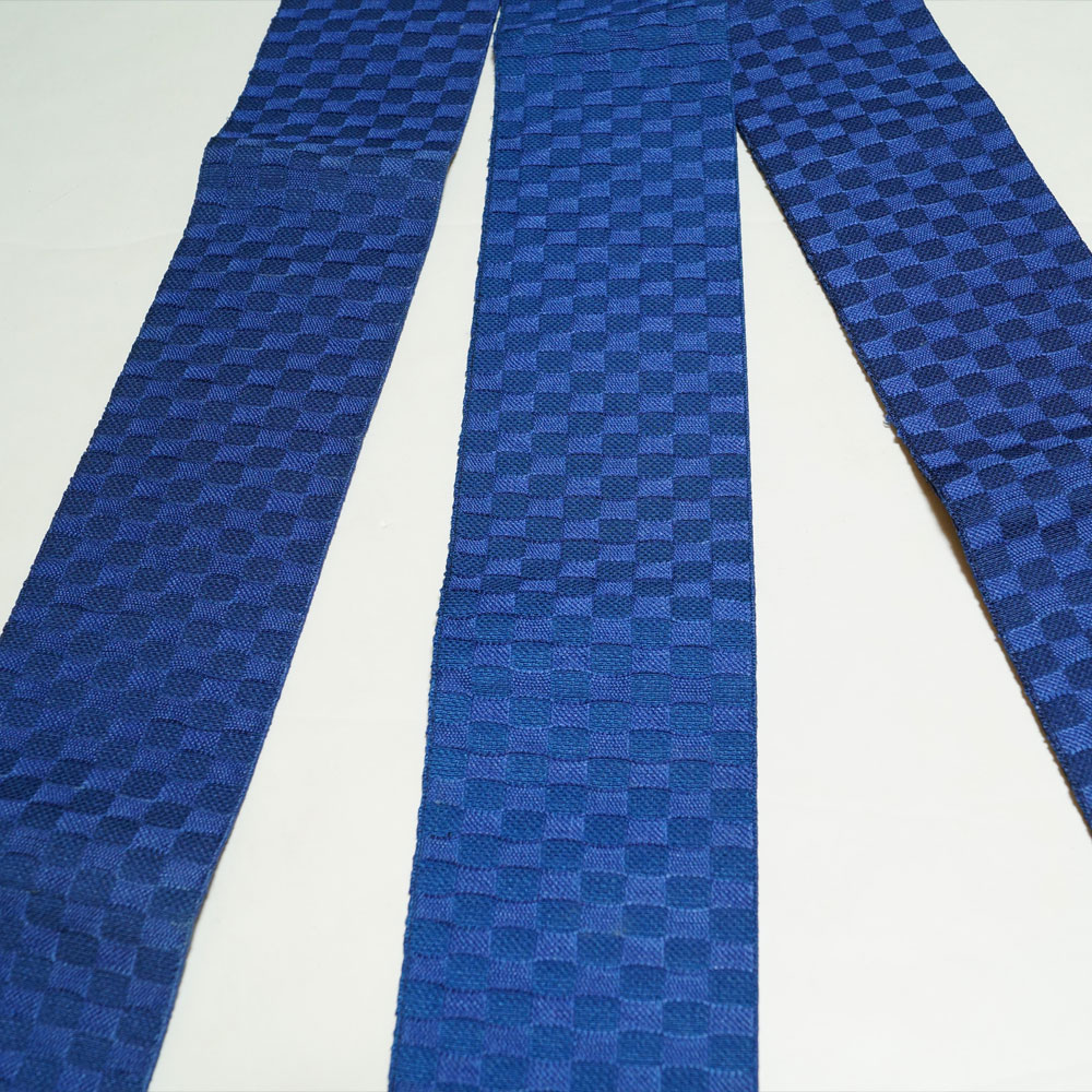 | 商品 説明 | 紺瑠璃・紺色系の織り分けにて波紋模様が施された角帯です。裏地も少し薄いお色の同柄となっております。 手先には房が付いており、垂れ先はかがっておりませんので、中に折り畳んでご着用下さいませ。 |